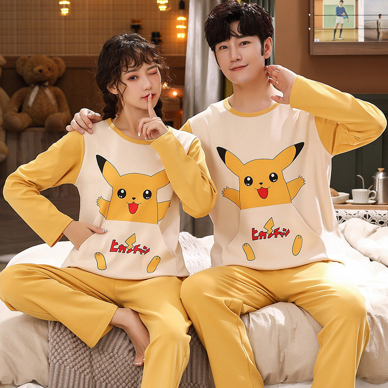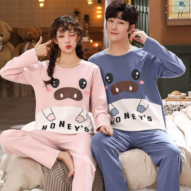 📚 春秋季情侣睡衣女纯棉长袖夏季男大码全棉可爱卡通家居服套装韩版