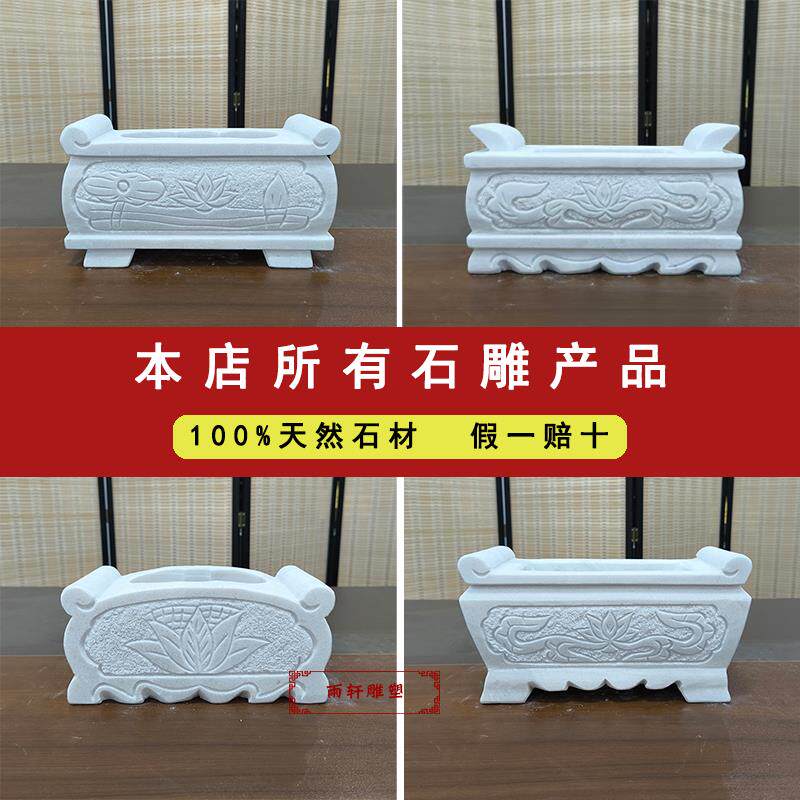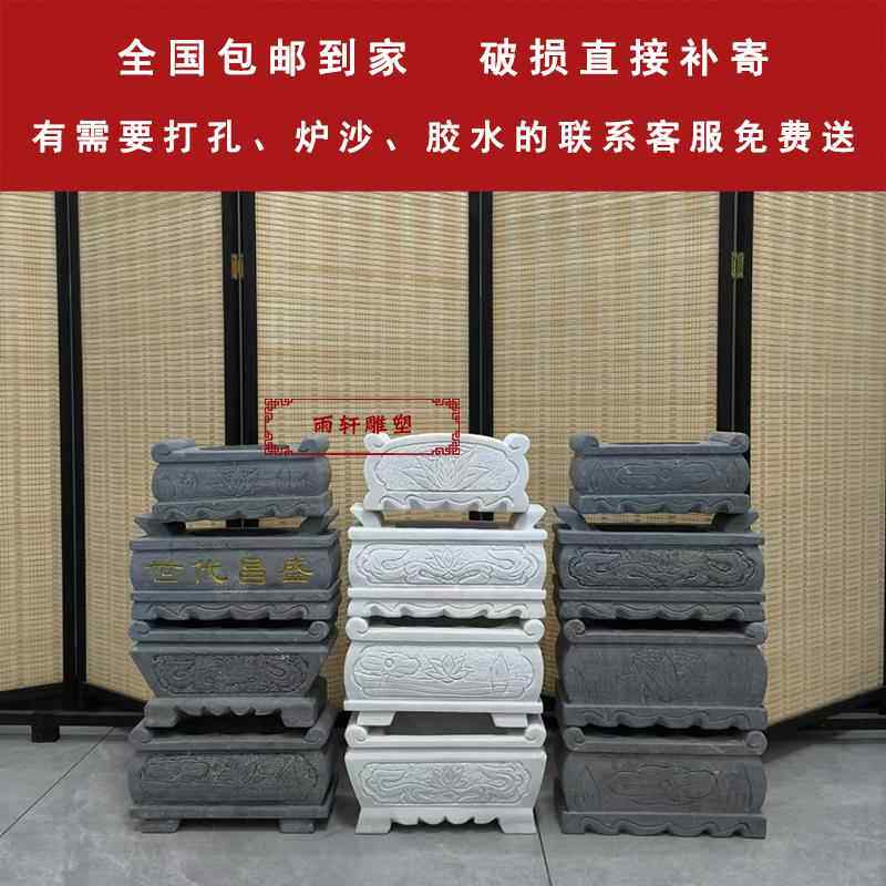 📚 天然石材香炉青石香炉坟前户外石香炉汉白玉墓前祭祀烧香石头香插
