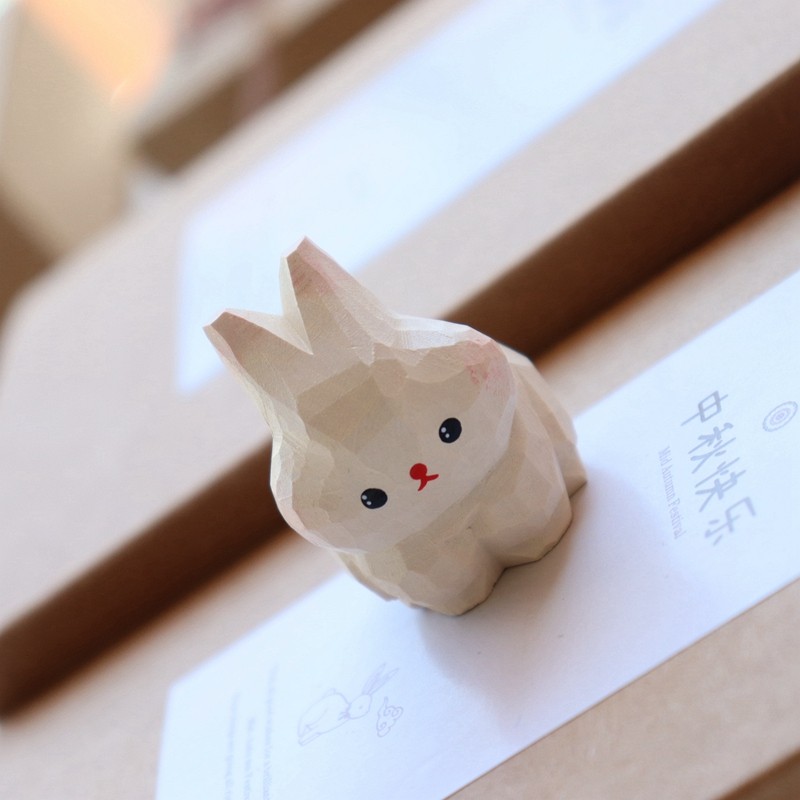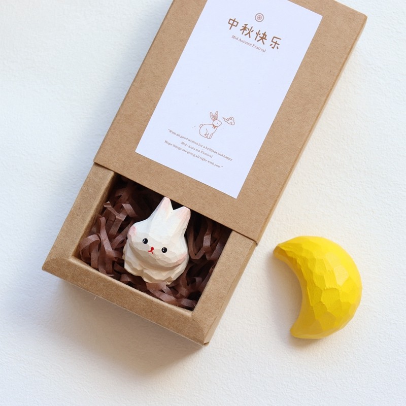 📚 可爱手工木雕月兔摆件小兔子月亮车载公仔桌面装饰中秋节伴手礼品
