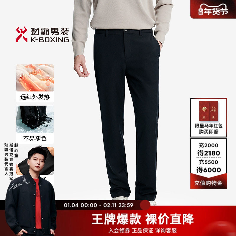 📚 【远红外发热】劲霸男装男士长裤子秋冬商务弹力舒适直筒休闲裤