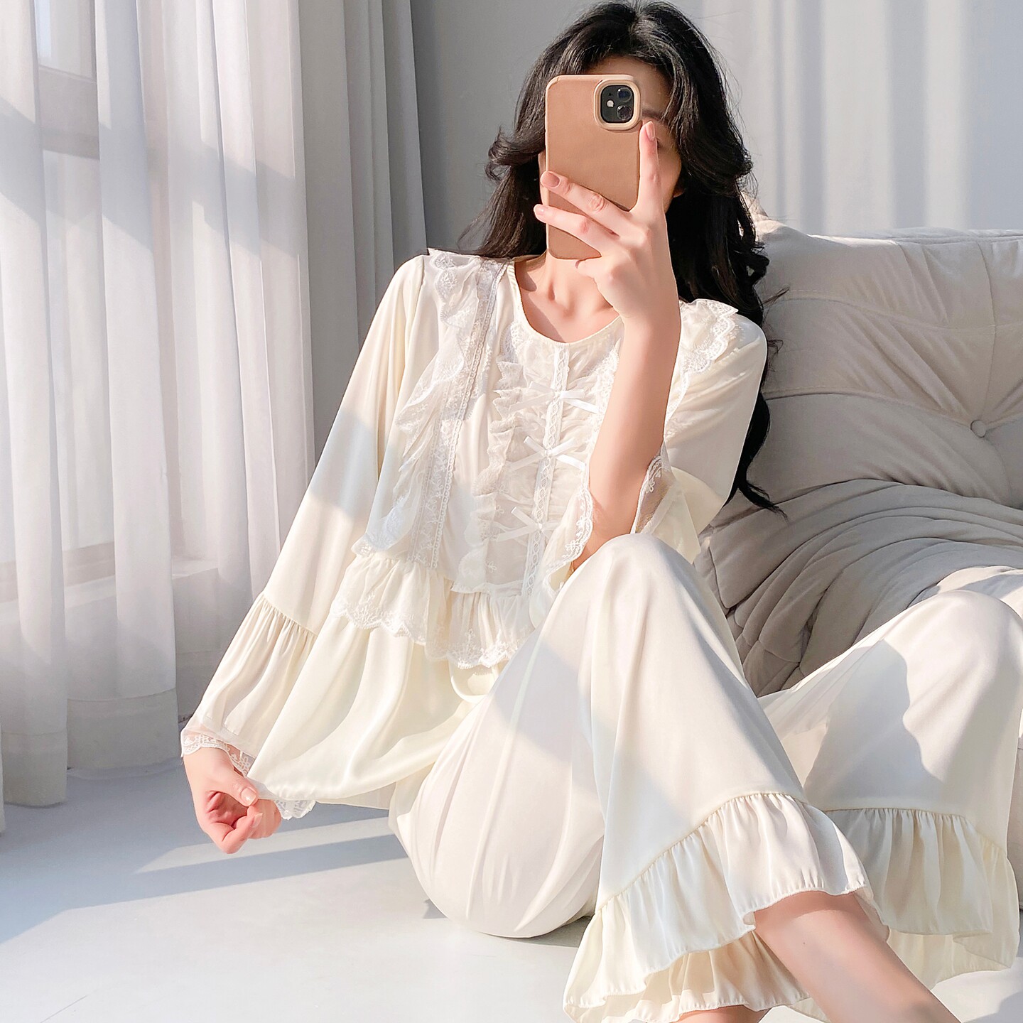 07¥ CA381 q5VIUGPuTZK¥ https://m.tb.cn/h.i2Z8Wgp 绝美睡衣女士冰丝2026春秋季新款超好看独特漂亮出门长袖长裤蕾丝 --------------------- 【原售价】168元 【现售价】109元。