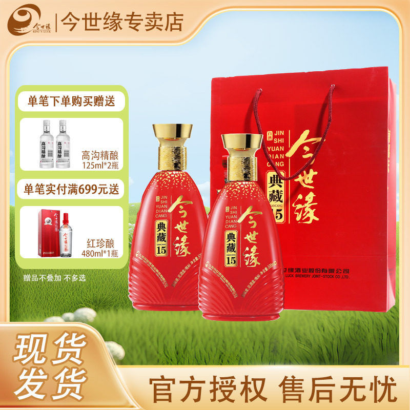 📚 今世缘典藏15 42度500ml*2瓶手提袋装 喜庆红瓶 婚喜宴用酒