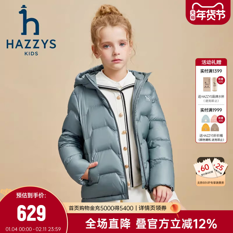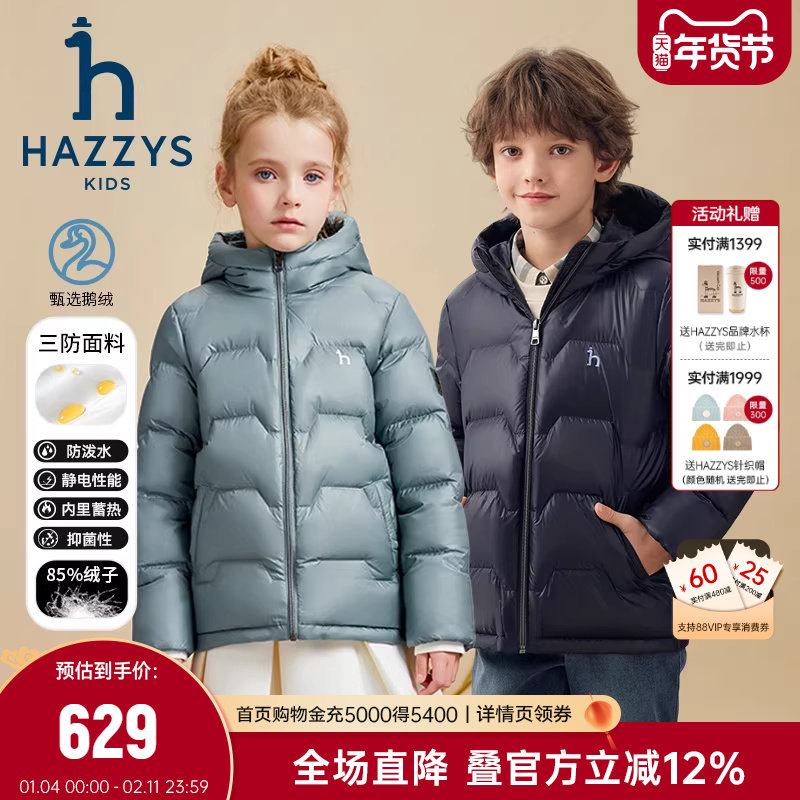 📚 hazzys哈吉斯童装男女童鹅绒羽绒服冬新蓄热三防抑菌外套