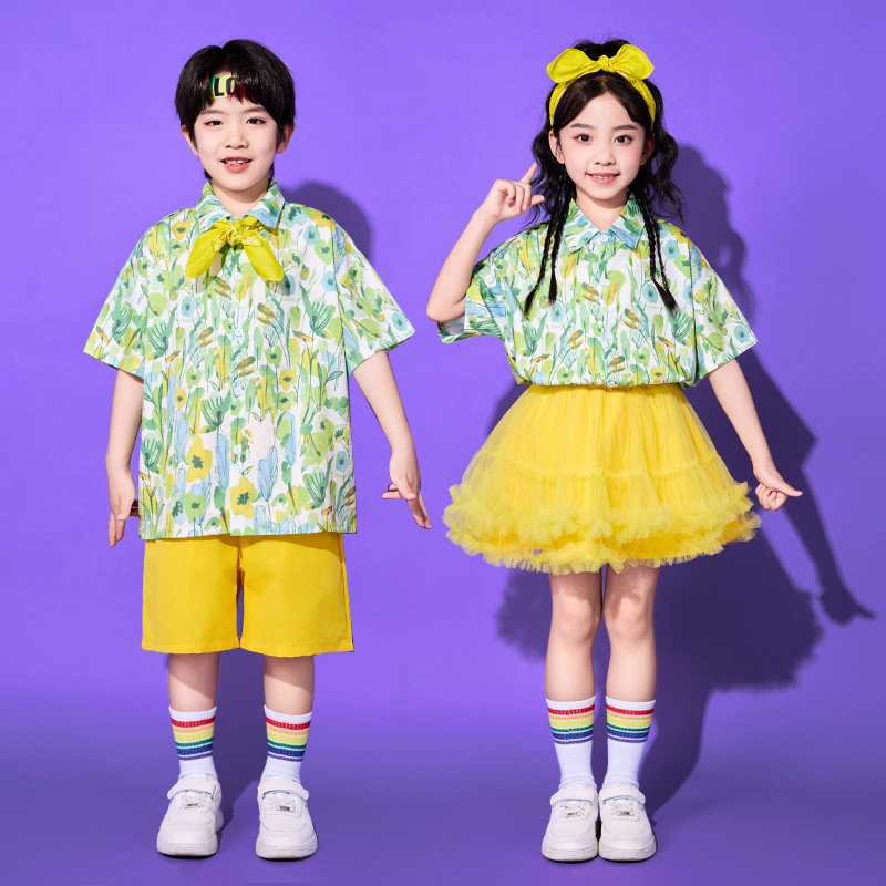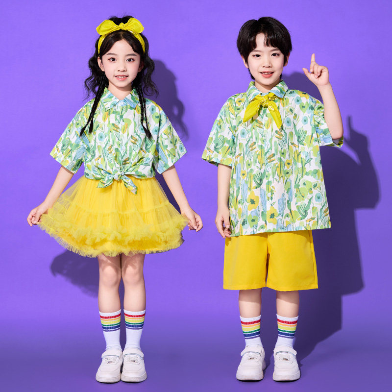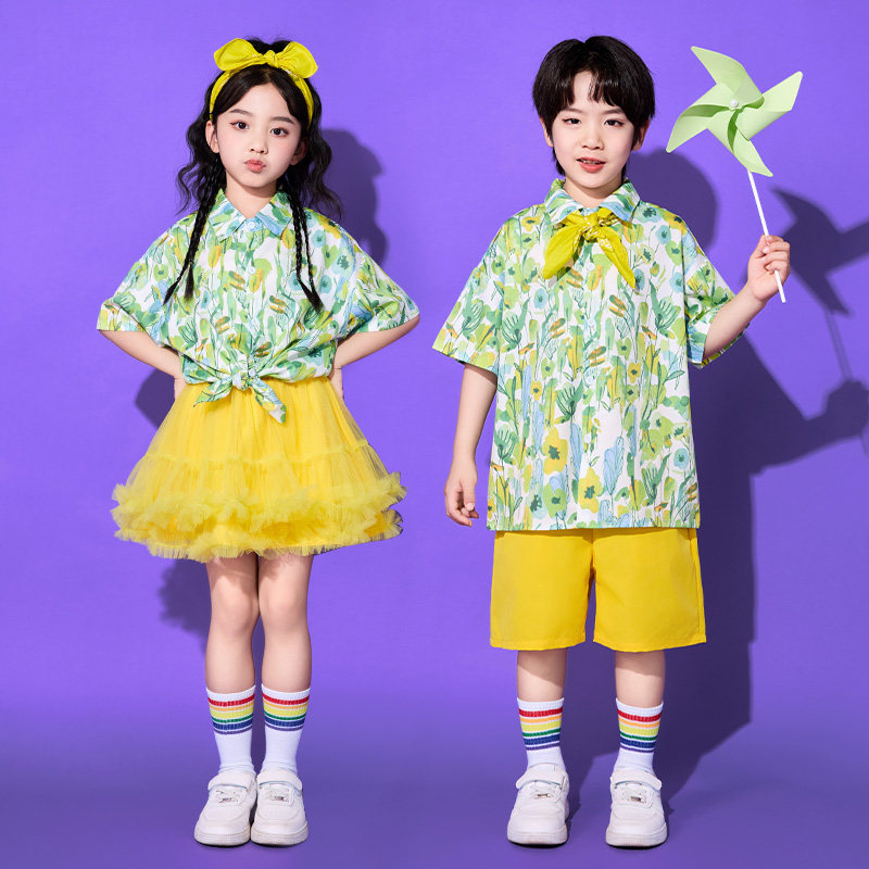 📚 六一儿童节表演服装小学生绿色衬衫啦啦队演出服幼儿园舞蹈服班服