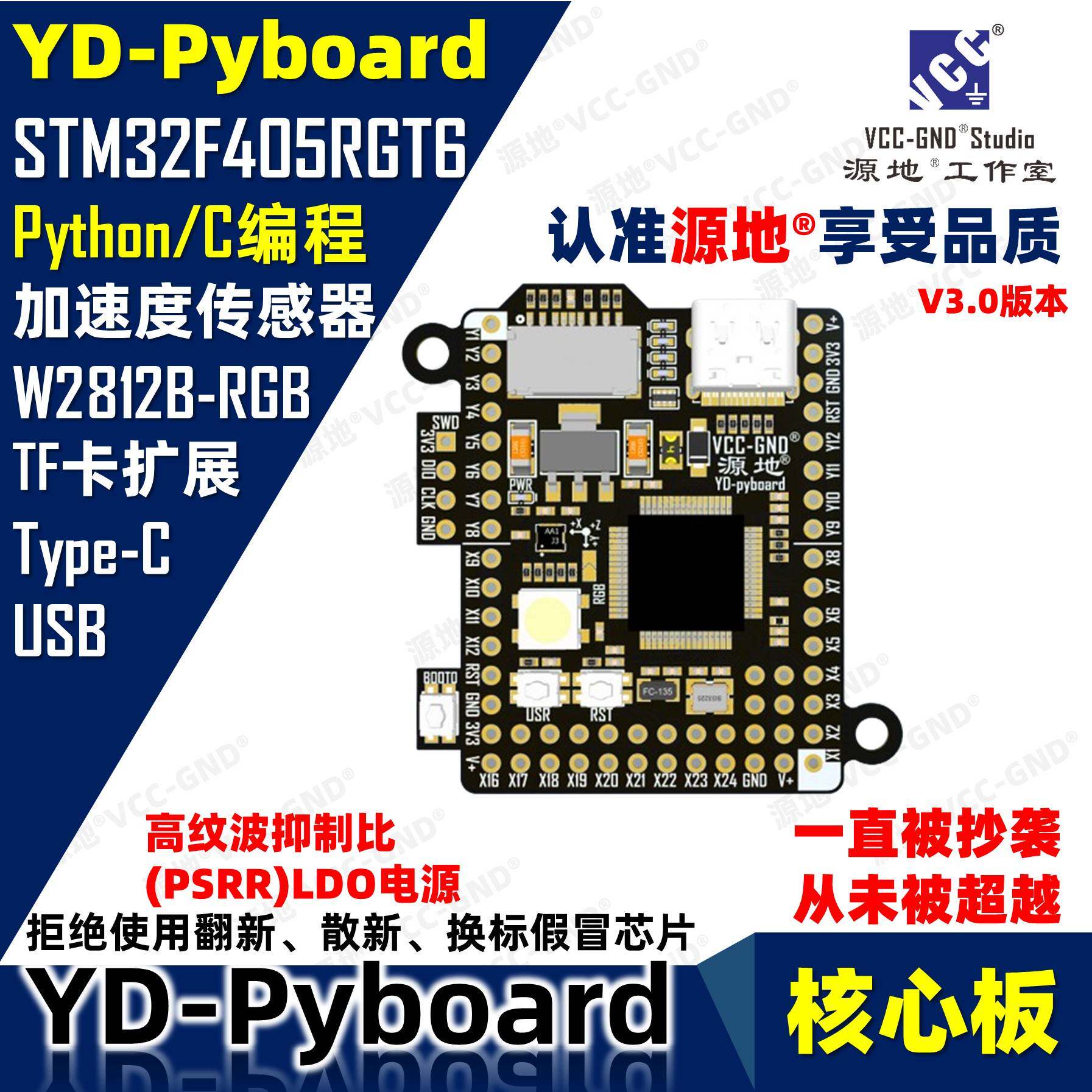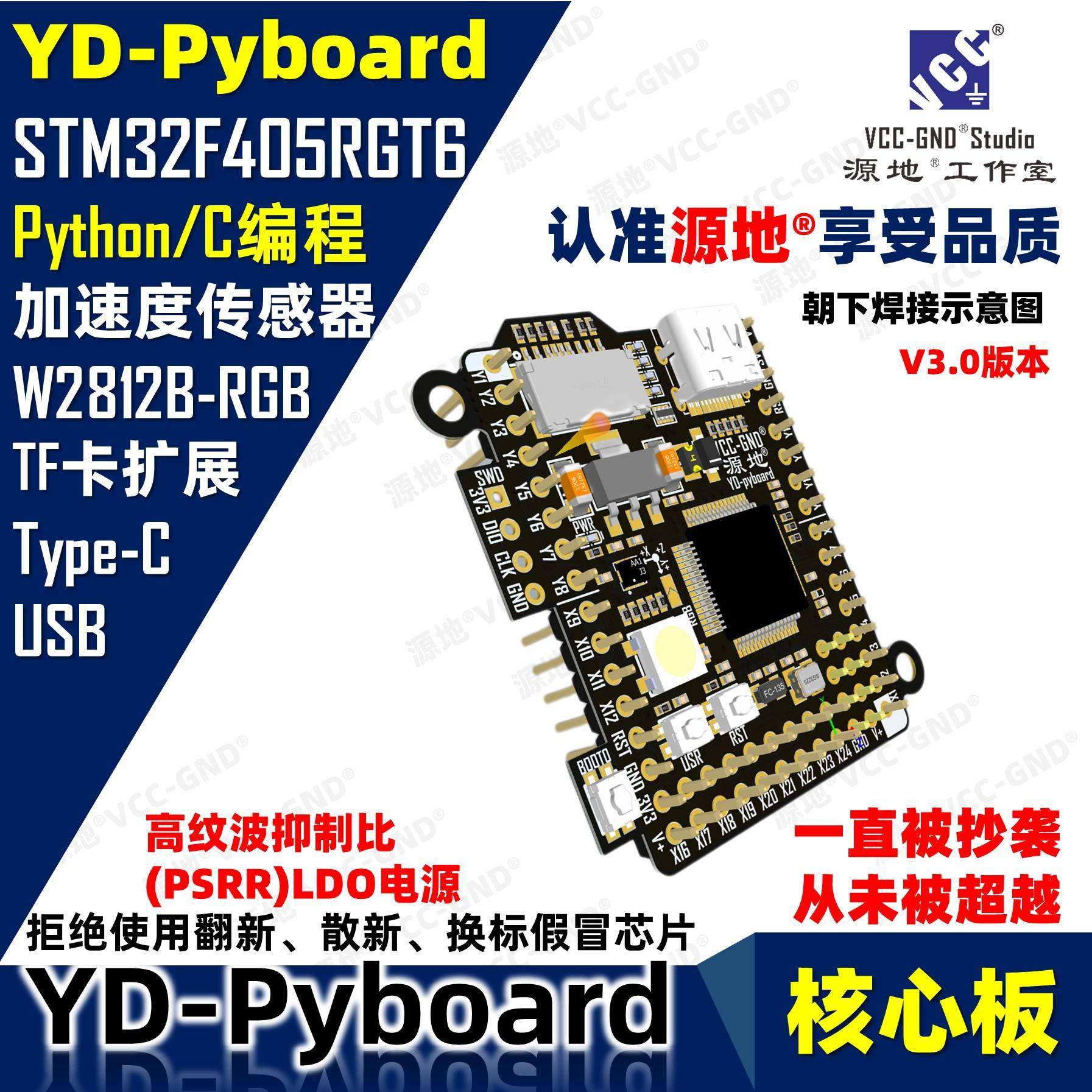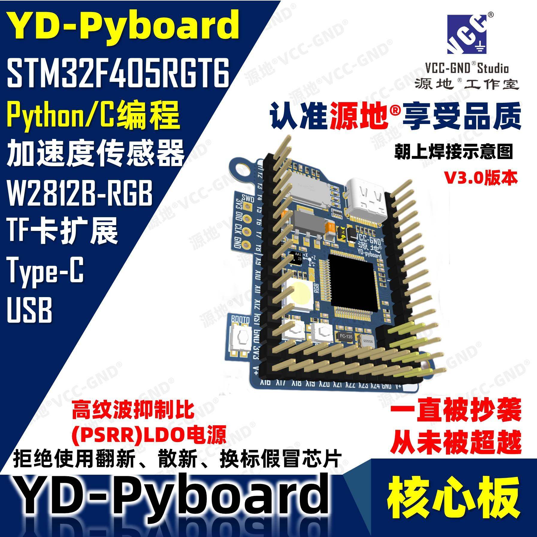 📚 源地YD-Pyboard核心板Micropython编程STM32F405RGT6开发板系统板