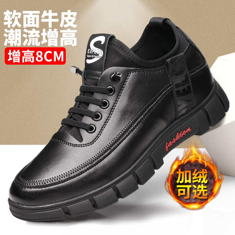 📚 冬季增高鞋男士10cm8cm运动休闲内增高皮鞋厚底男款加绒保暖男鞋