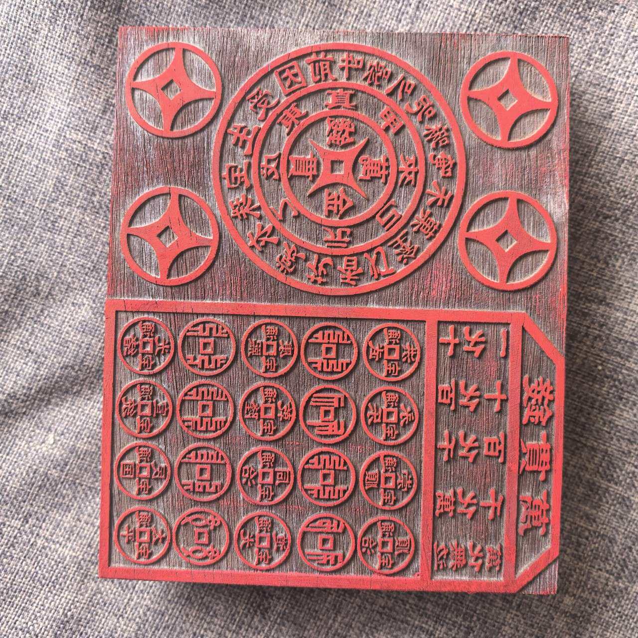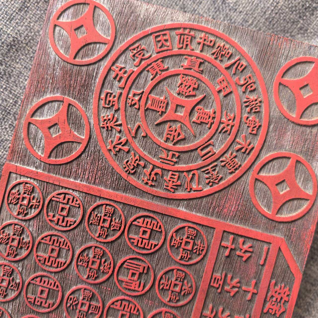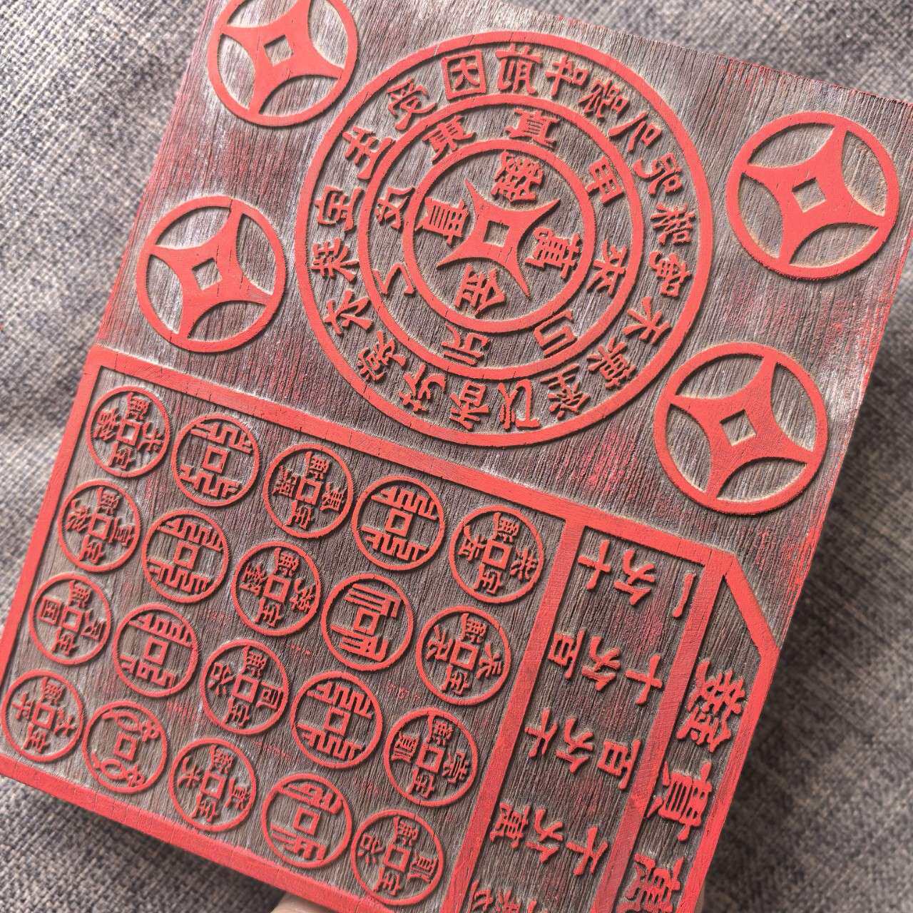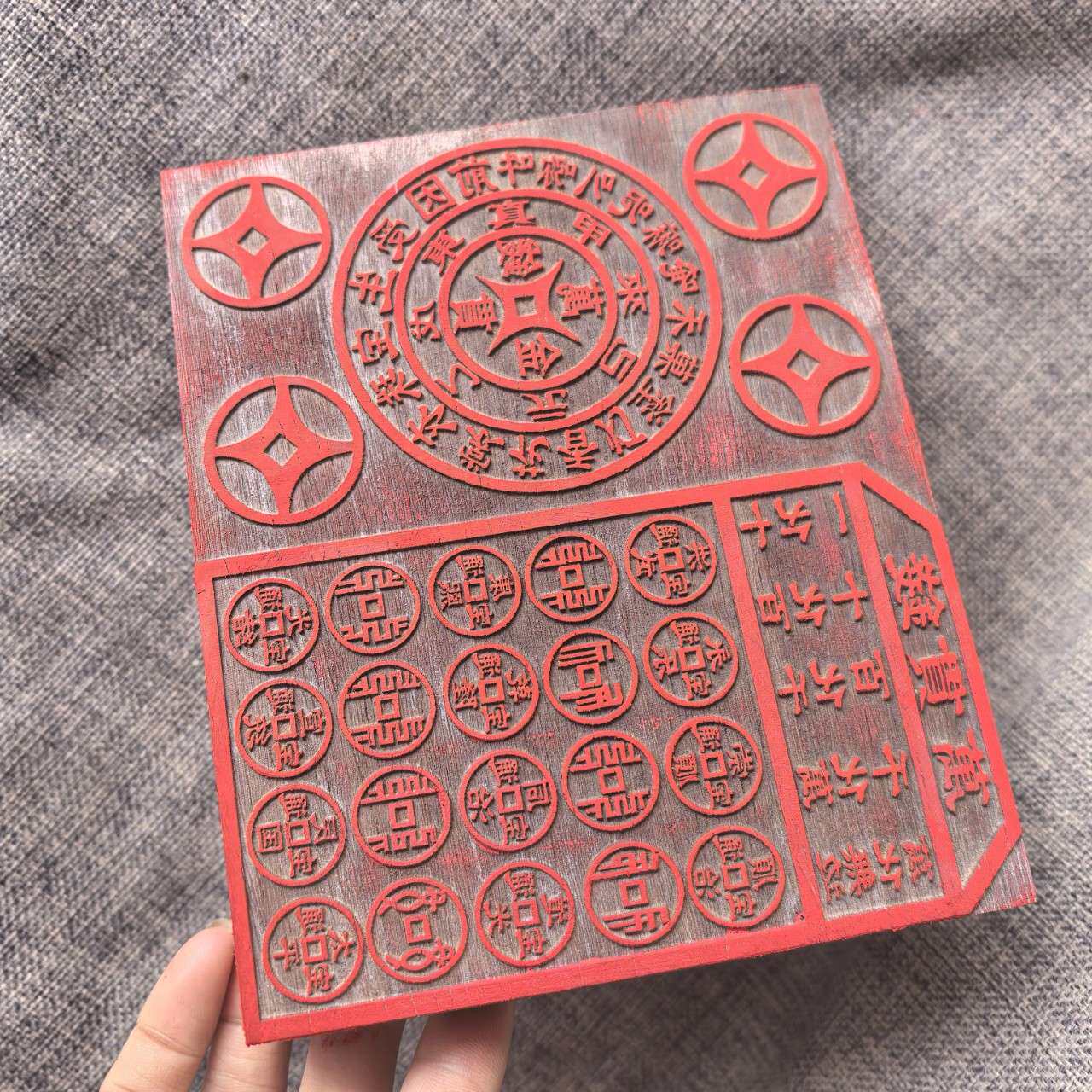 📚 道用品万贯钱印版金钱万贯印章木制雕刻17.5公分