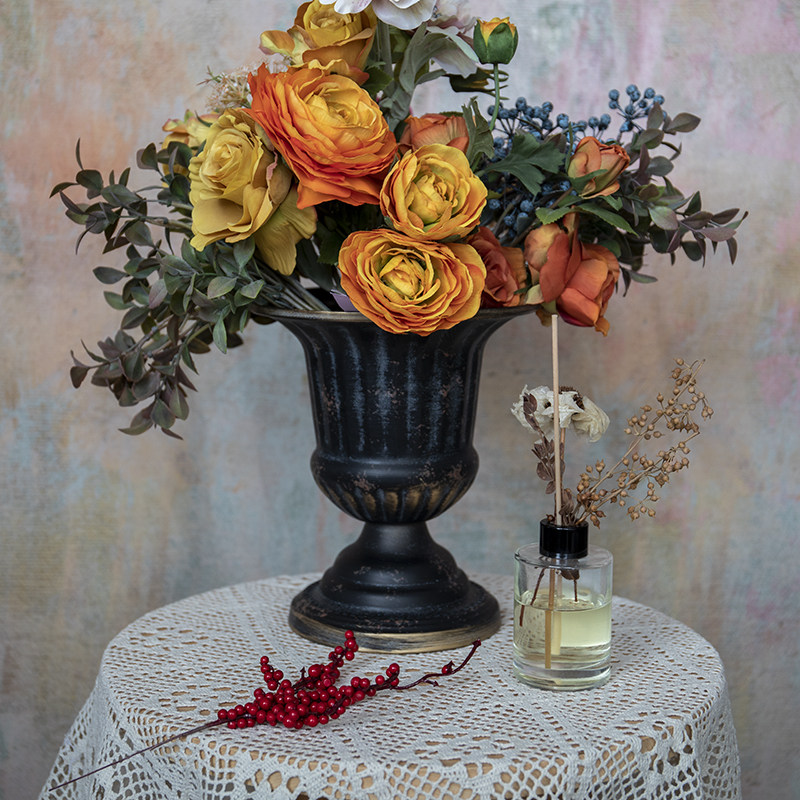 🍃首先,它的设计真的是非常复古,仿佛带我们回到了那个古典的时光。高脚杯的设计让整个花器看起来非常精致,充满了古典韵味。而且,它的材质非常优质,采用了铁艺,不仅坚固耐用,还非常美观。💚