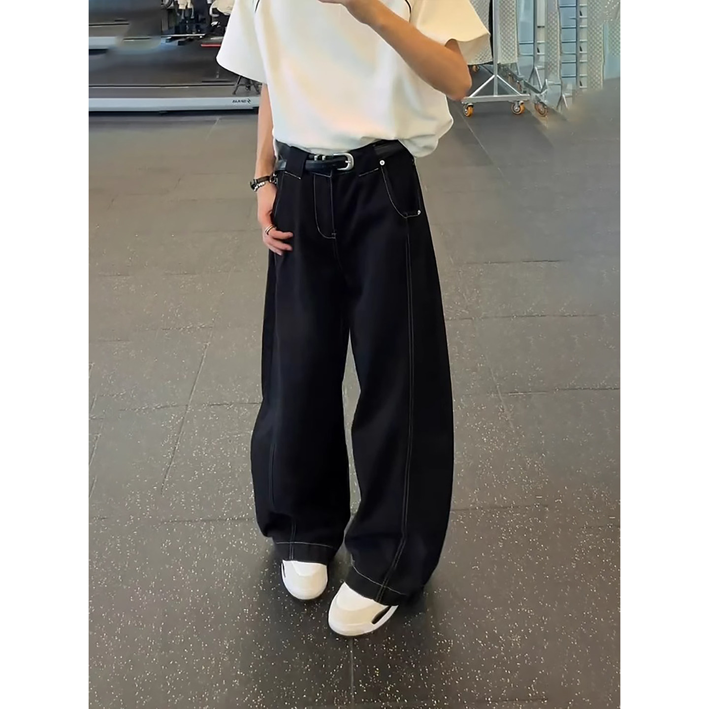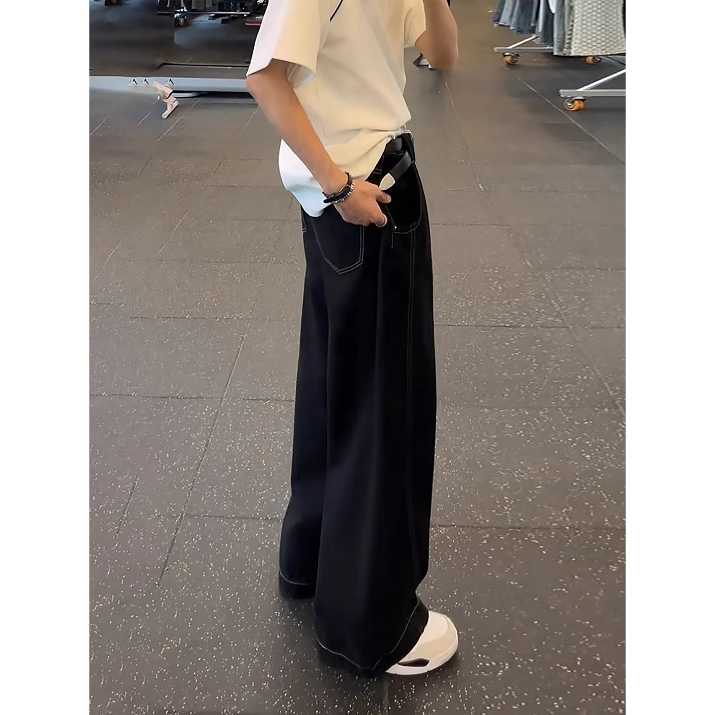 📚 丹宁a字弯刀牛仔裤男秋季高级感美式复古baggy裤子直筒阔腿微喇裤