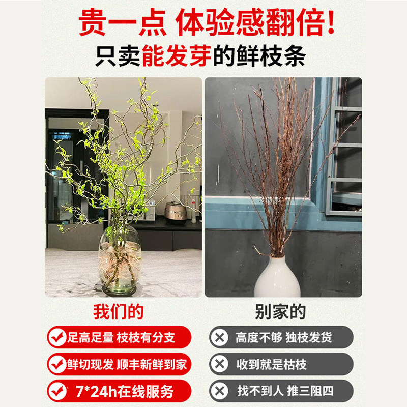 📚 龙柳鲜枝水培植物客厅旺宅绿植雪柳带花苞花卉室内盆栽好养活国风