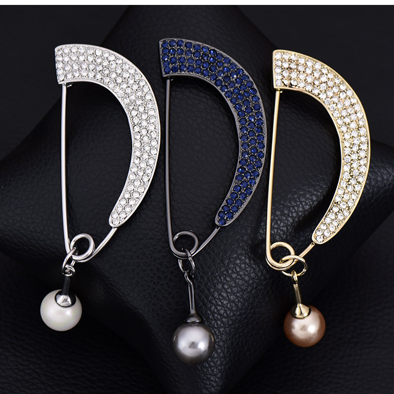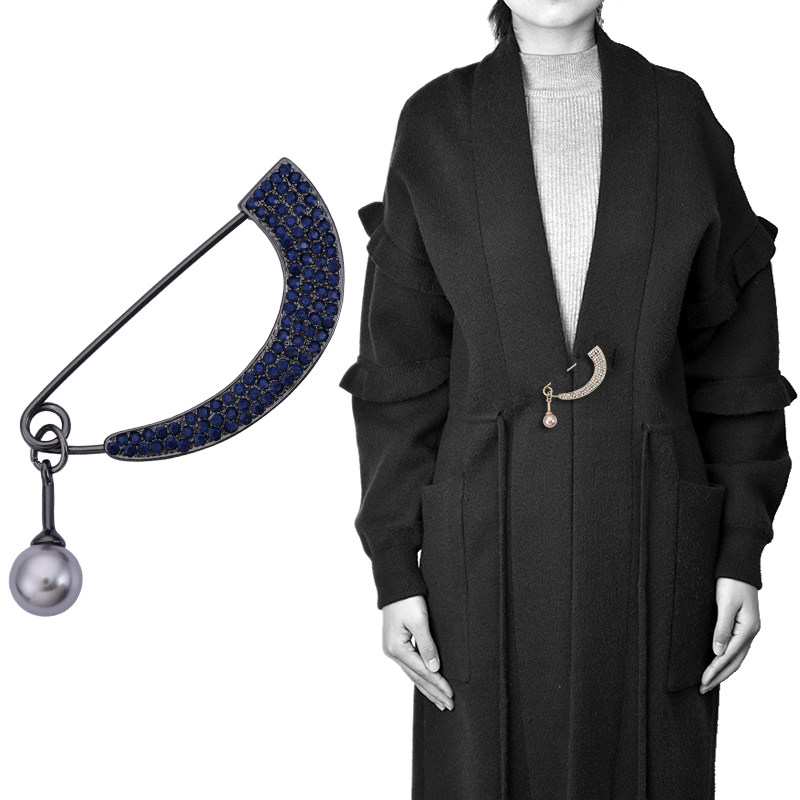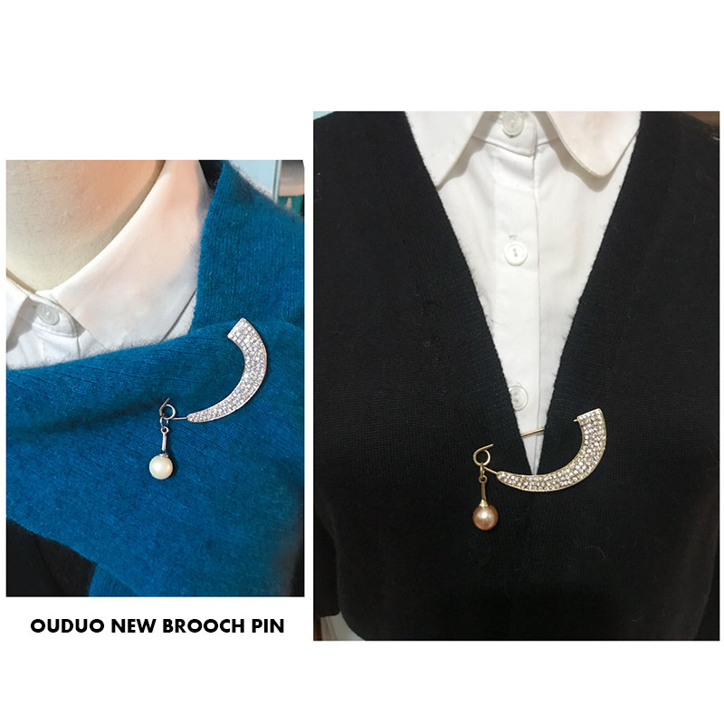 📚 欧多时尚新品珍珠大别针扣女针织开衫胸针胸花大衣扣固定围巾披肩