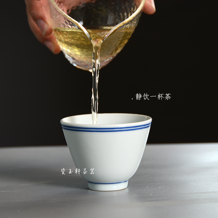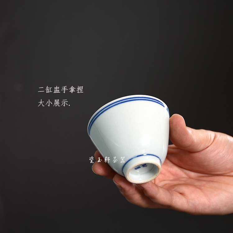 📚 景德镇瓷玉轩陶瓷功夫茶具古窑手绘青花玄纹双线主人品茗杯二缸盅