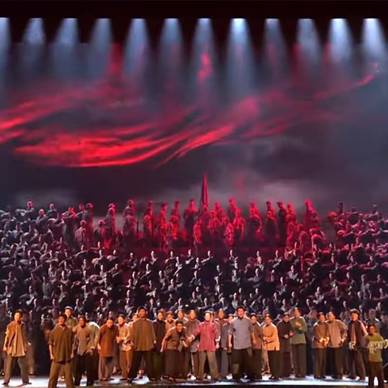 🌺舞台剧中的红军主题群舞,充满了浓厚的时代感和历史厚重感。那独特的做工和质感,让人不禁想起那些曾经的抗战岁月。农民表演者的身姿矫健,与舞台上的红色服装相互映衬,简直是一场视觉盛宴。