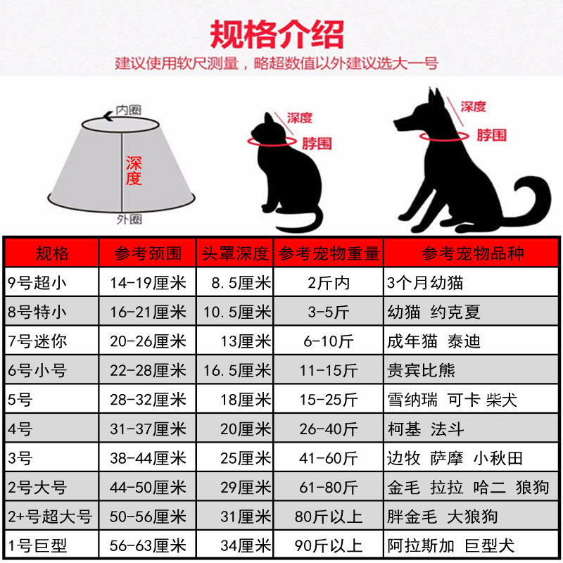 📚 伊丽莎白圈加深大型犬狗狗宠物头套猫咪防舔咬绝育伊莉头罩圈加长