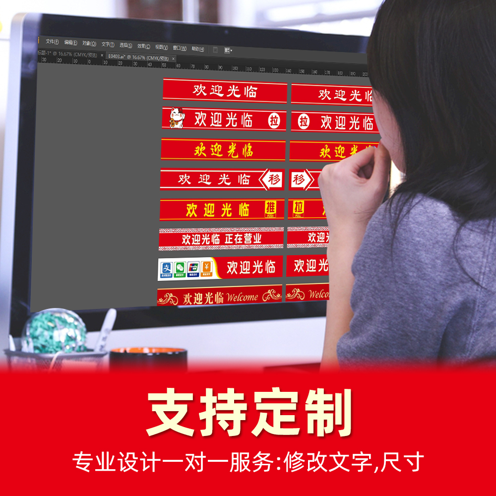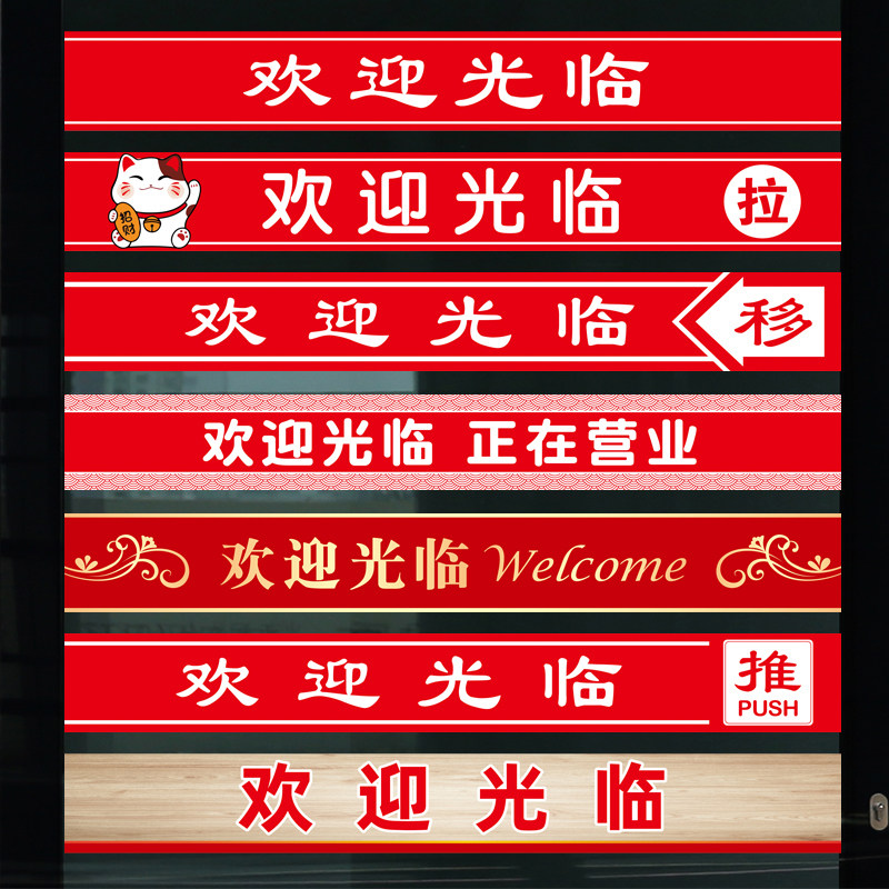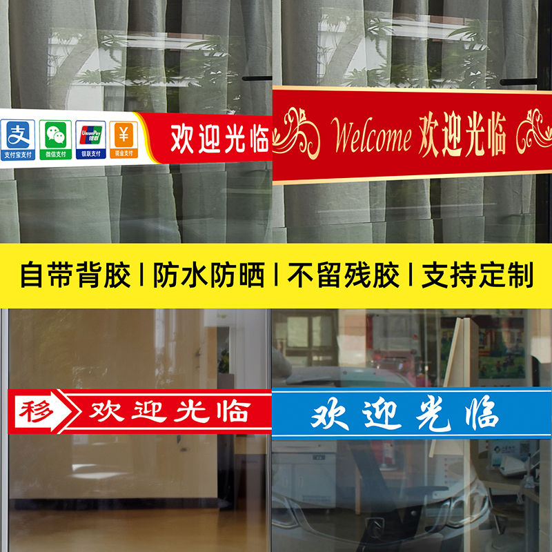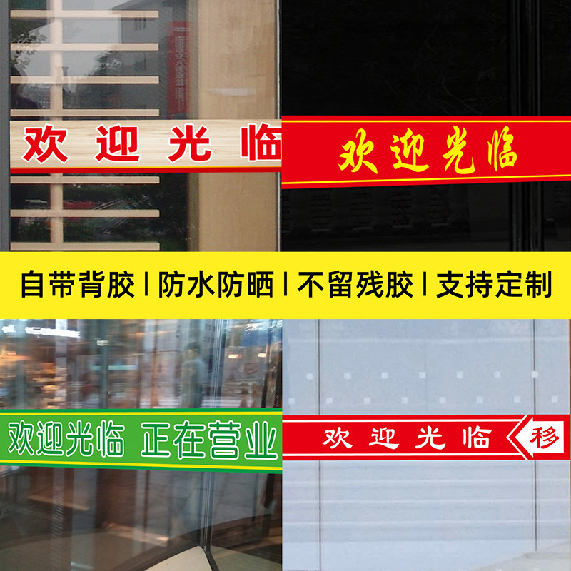 📚 定制门市商铺公司办公室欢迎光临玻璃门防撞腰线广告字自粘贴纸画