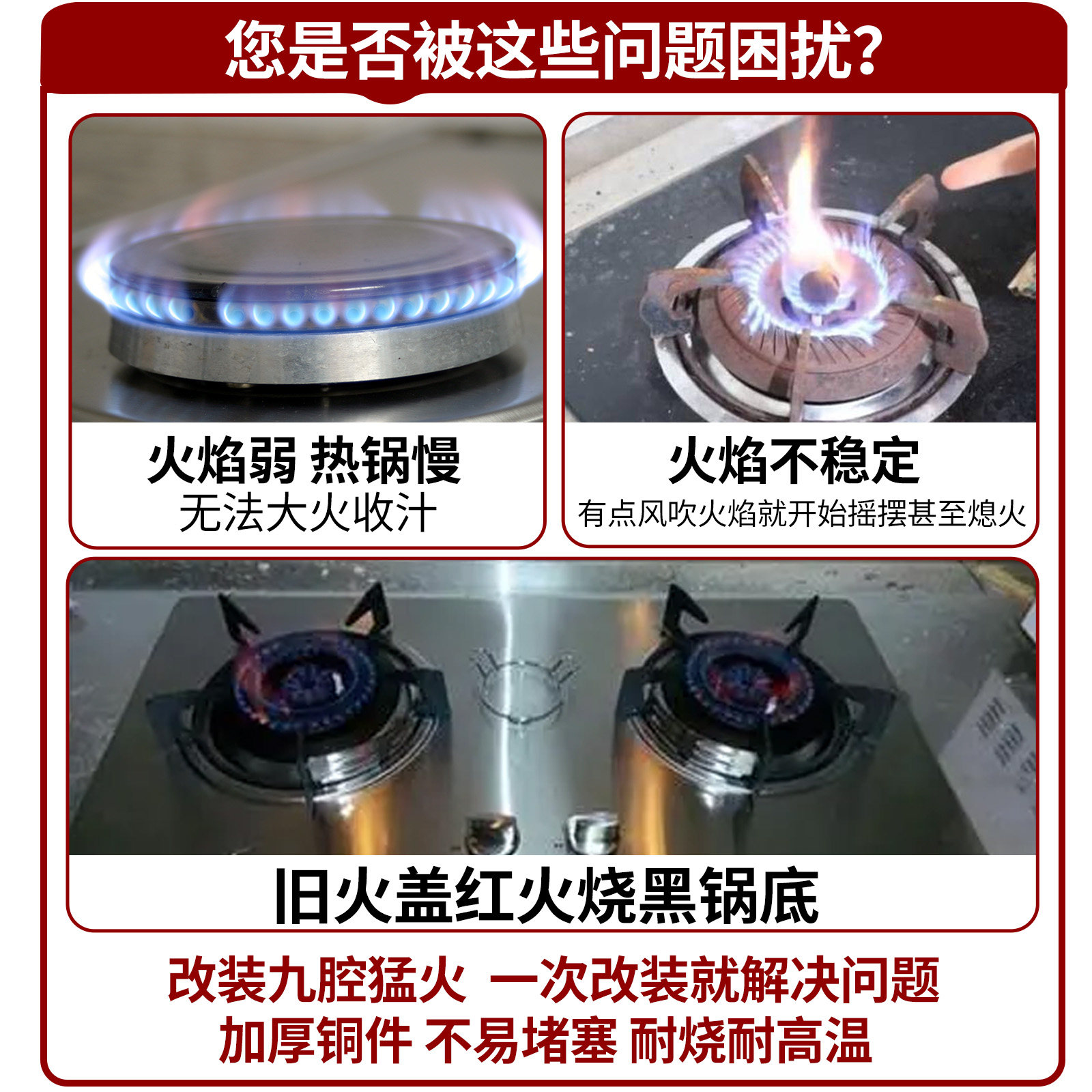 📚 九腔猛火灶配件大全天然气煤气灶燃气灶具改装九头炉头火盖分火器
