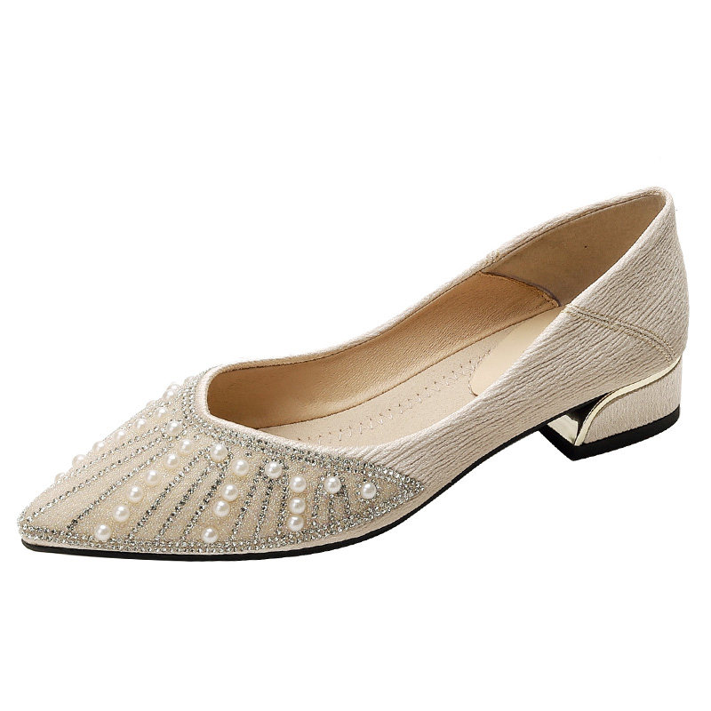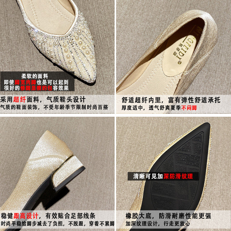 📚 尖头单鞋女夏2026年新款粗跟水钻珍珠船鞋软底浅口大码瓢鞋41到43
