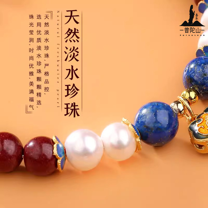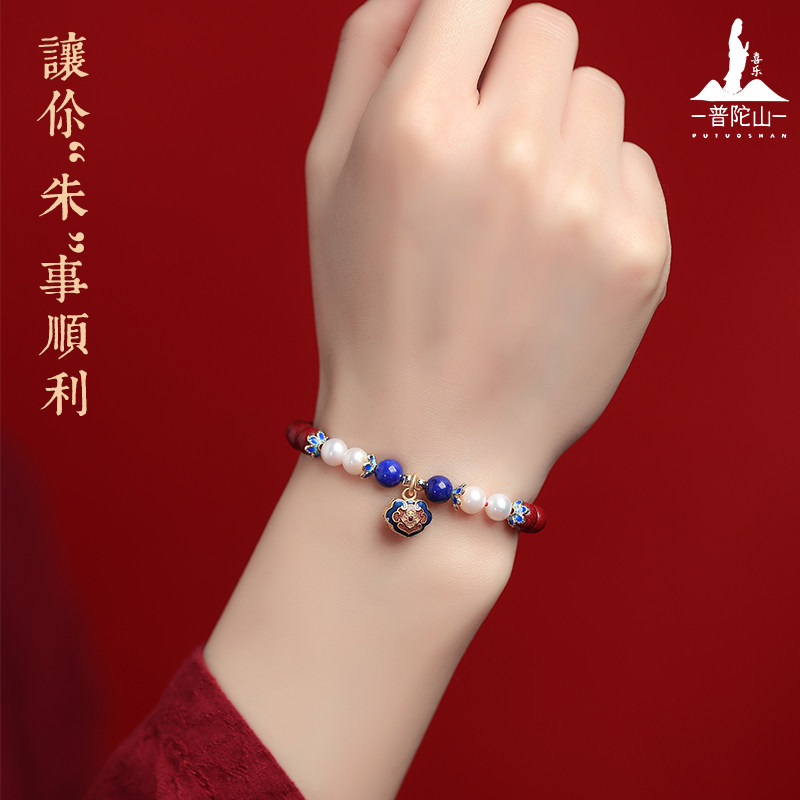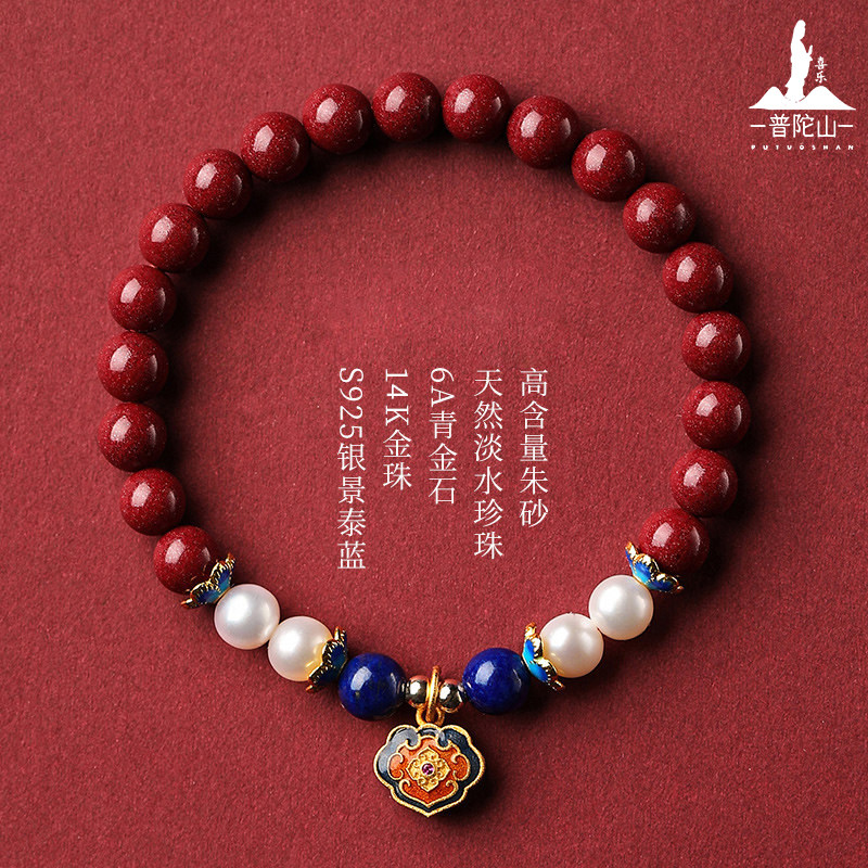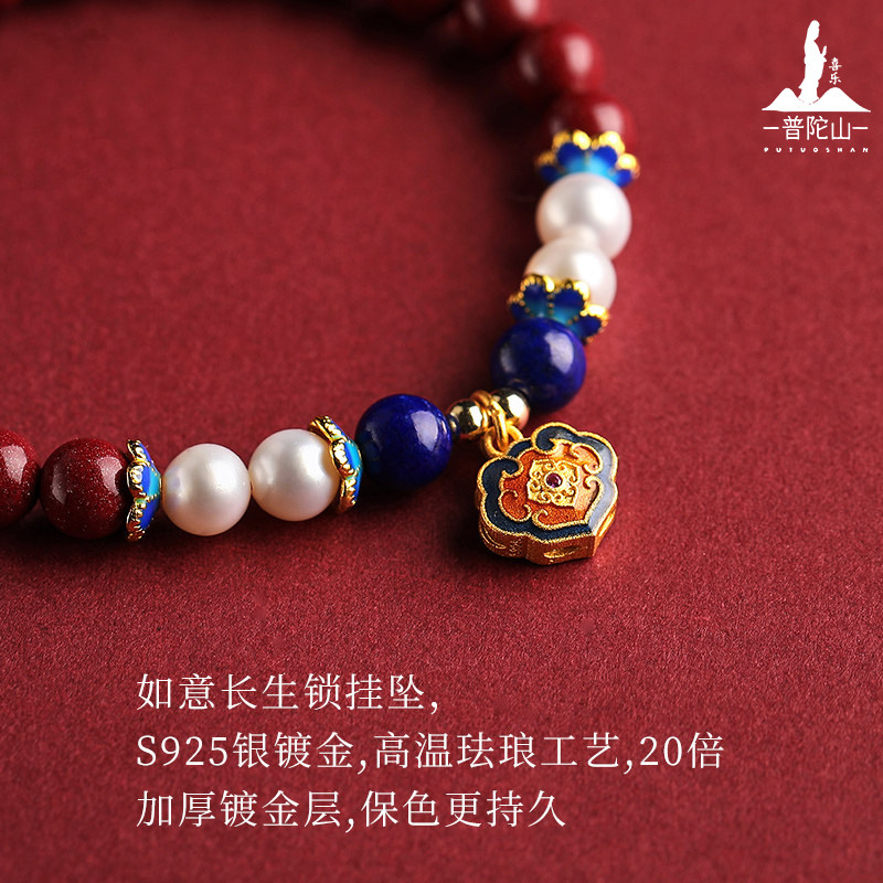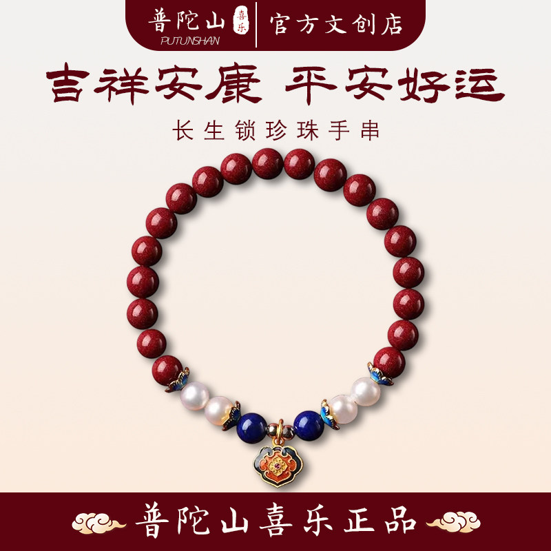 📚 普陀山天然朱砂长生锁珍珠手串女款本命年手链平安锁送情人节礼物