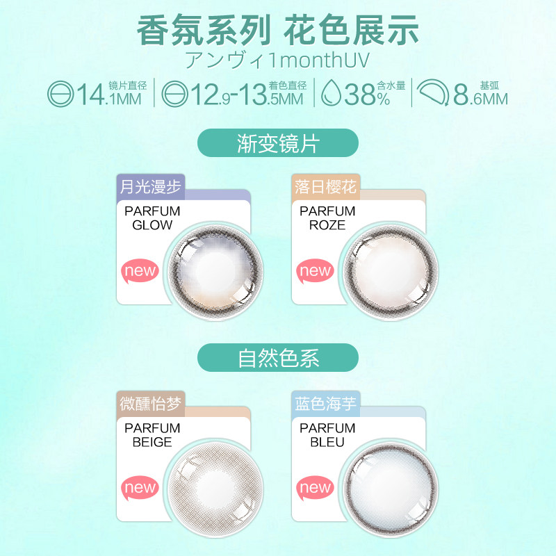 📚 envie美瞳香氛系列月抛1片装小直径彩色隐形眼镜高光渐变非周日抛