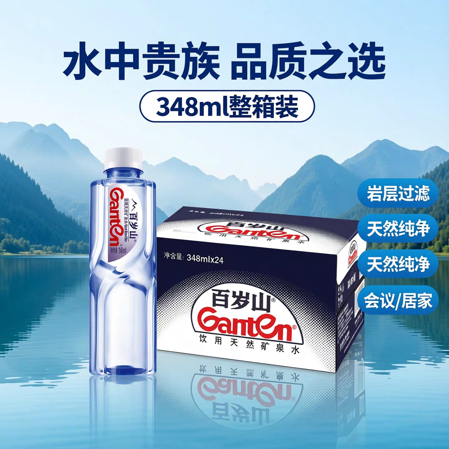 📚 百岁山天然矿泉水348ml*24瓶整箱装高档接待办公室会议饮用水