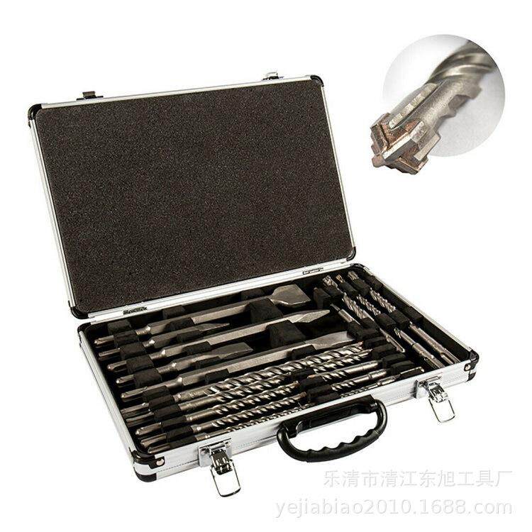 📚 电锤钻头17件套铝盒装塑盒圆柄钻头电锤尖凿扁凿破墙铲凿组合套装