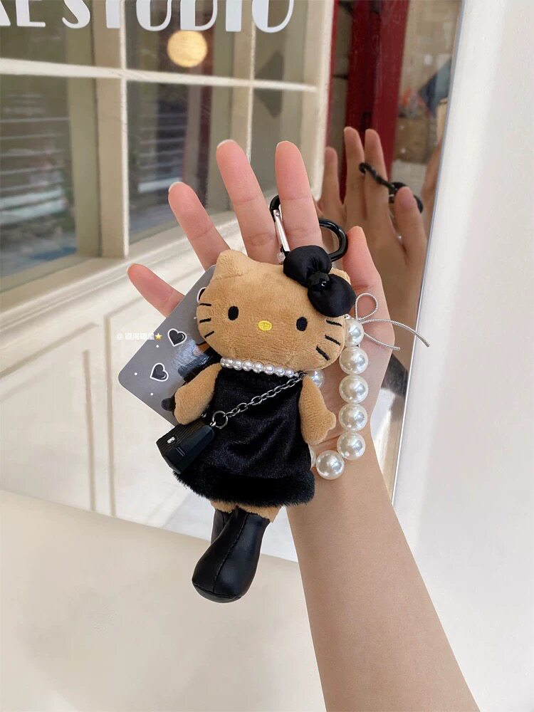 📚 日系长腿hellokitty凯蒂猫名媛风毛毛NIC豹纹爱心扣包包配饰挂件