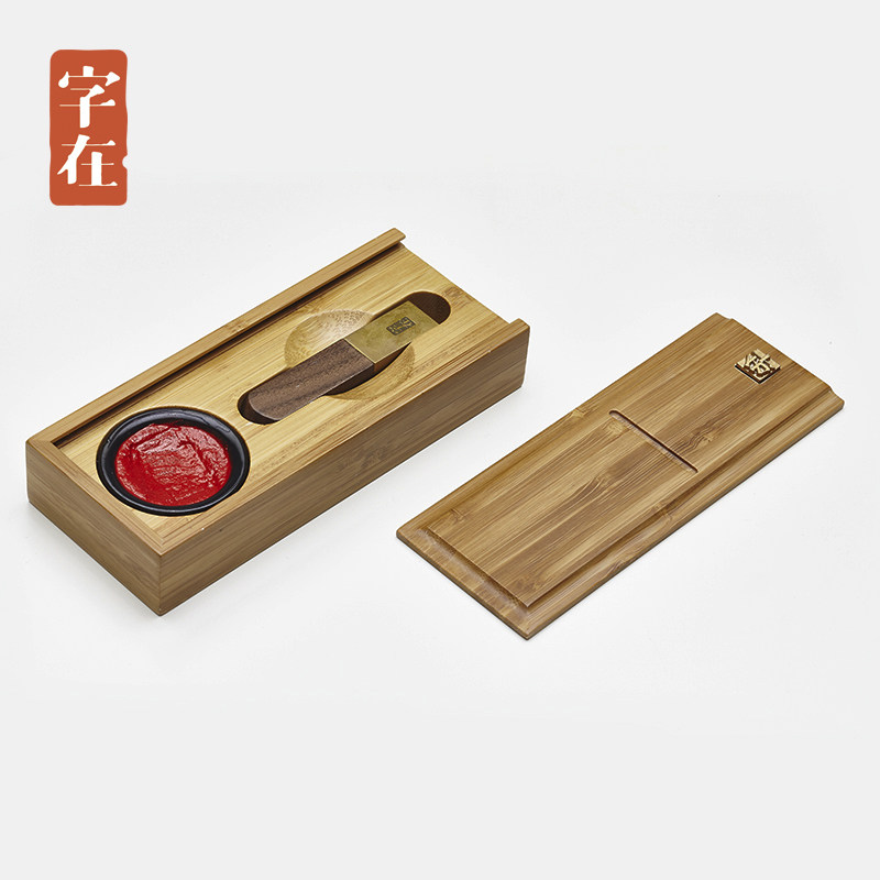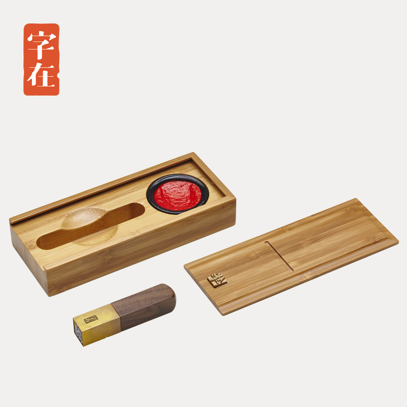 📚 字在得印者顺活字印章黄铜胡桃木定制铜印原色竹印泥礼盒活字印刷