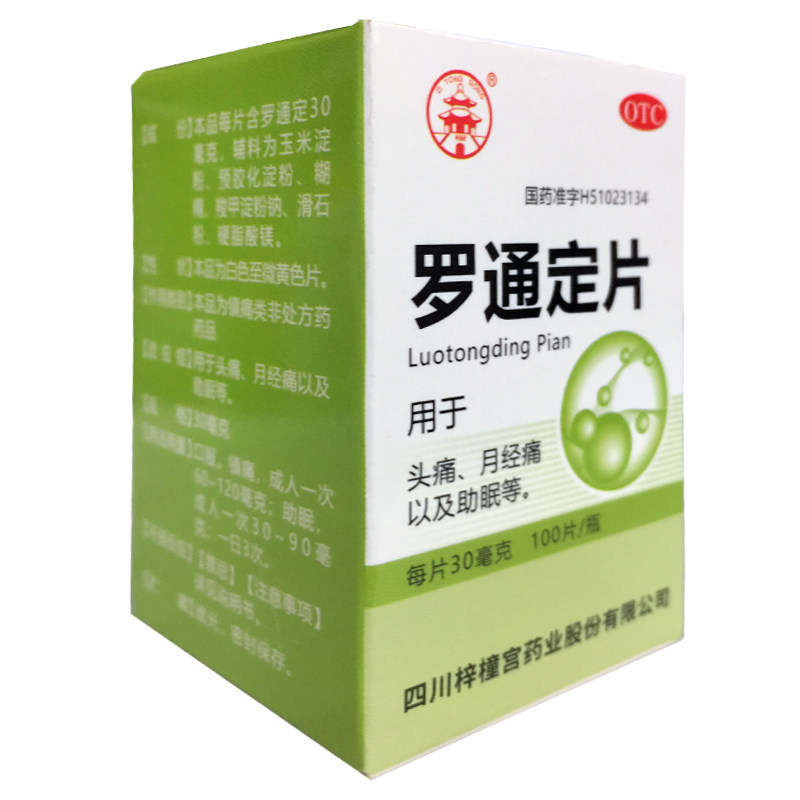 📚 正品梓橦宫 罗通定片 30mg*100片*1瓶/盒 头痛 月经痛 助眠