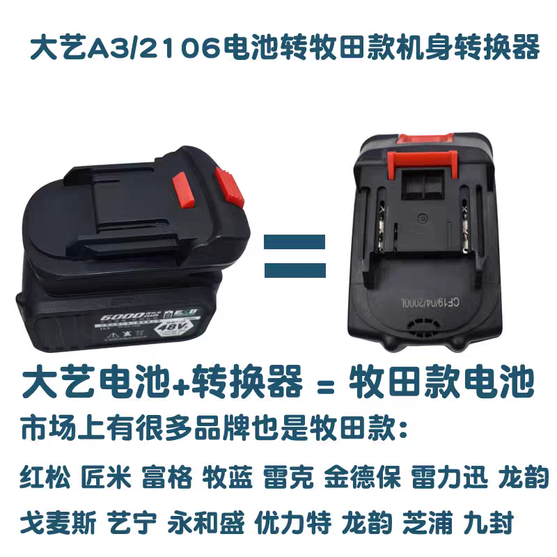 📚 大艺款电池转换器A3转牧田/2106转接头48VF58F手电钻电动扳手通用