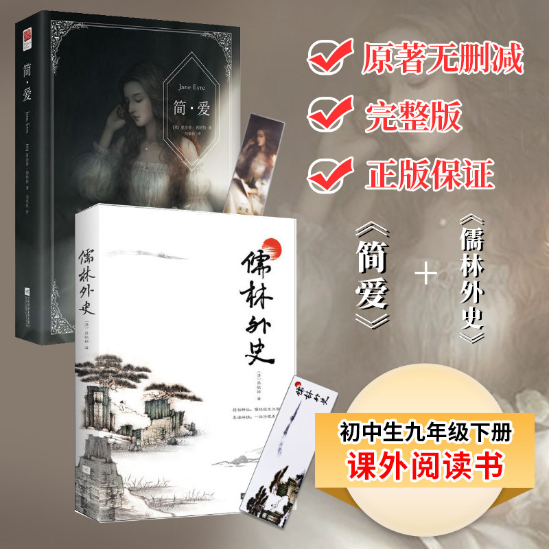 📚 正版 儒林外史和简爱完整版无删减初中生九年级下册推荐课外阅读书 简爱原著中文版儒林外史五十六回全本原著白话文版含注释