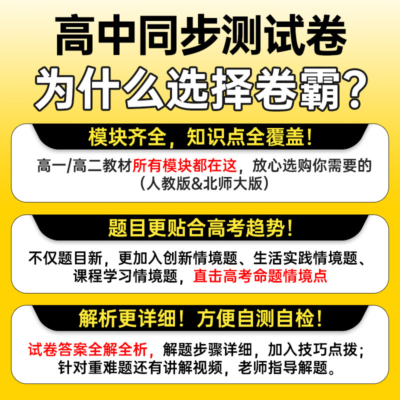 📚 2025新卷霸高中同步测试卷语文数学英语物理化学生物高一二上下册人教版必修选修一二册12练习题册单元期中期末新教材版必刷月考卷