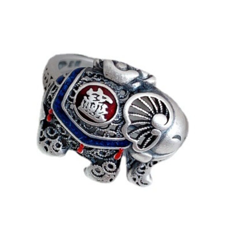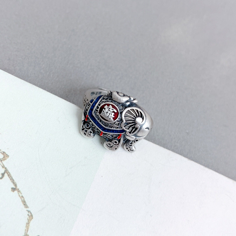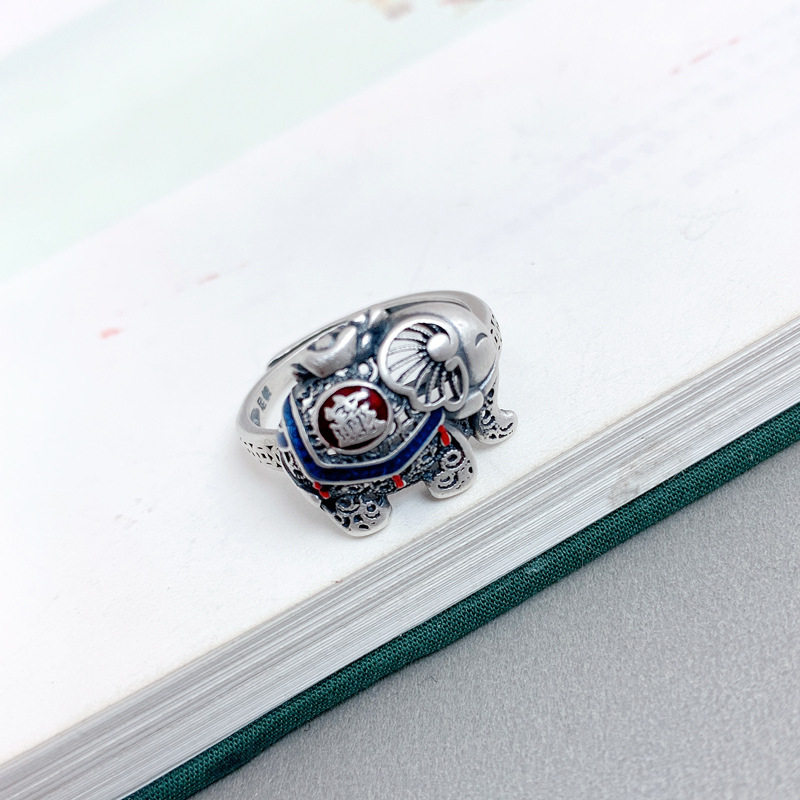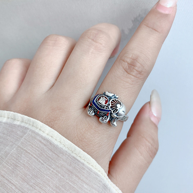 📚 泰银珐琅如意吉象戒指女个性复古民族风小象指环活口时尚指环