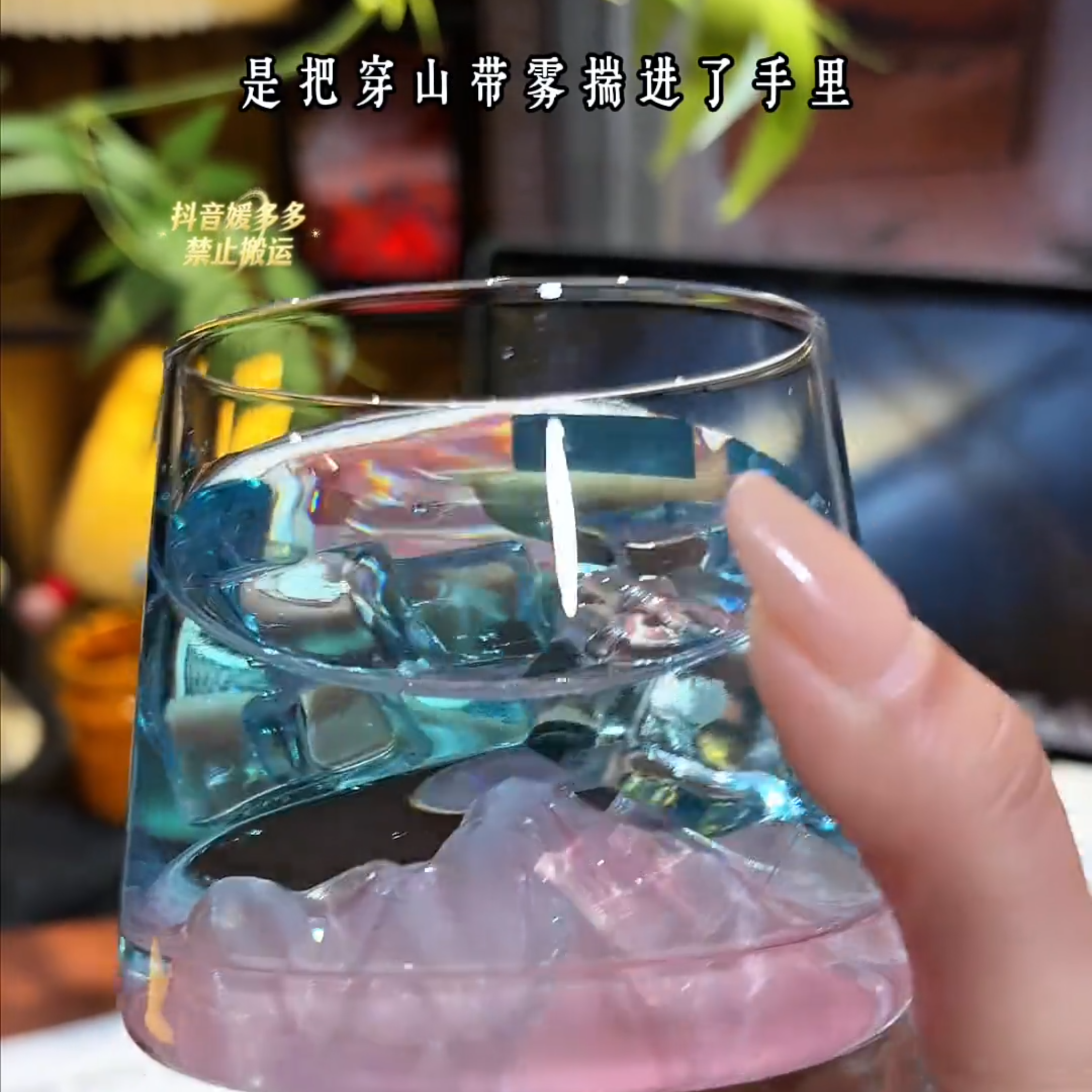 📚 酒杯杯子日式富士山杯炫彩观山杯家用玻璃冰山水杯茶杯威士忌洋酒