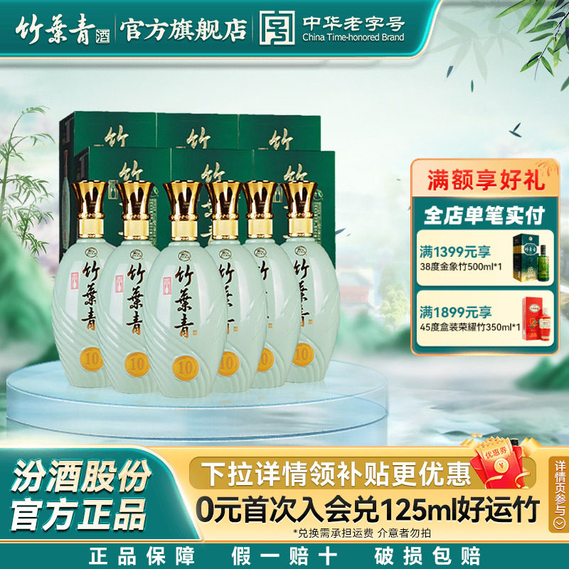 📚 【礼宴必备】青瓷10竹叶青酒38度500mL6瓶整箱露酒汾酒 盒装送礼