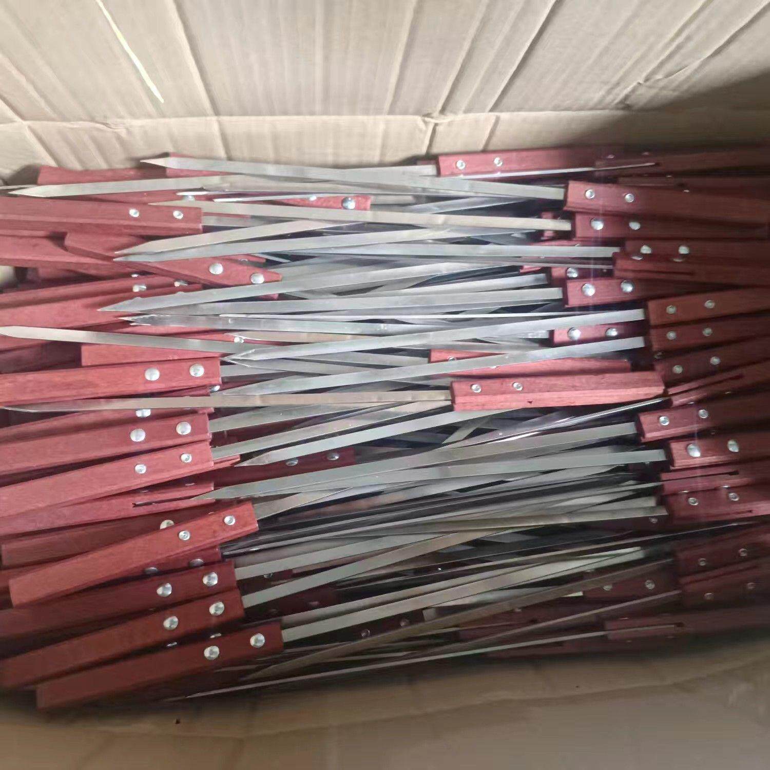 📚 不锈钢方木柄烧烤扁签子商用烤大肉块大签子羊肉串烤肉工具烧烤签