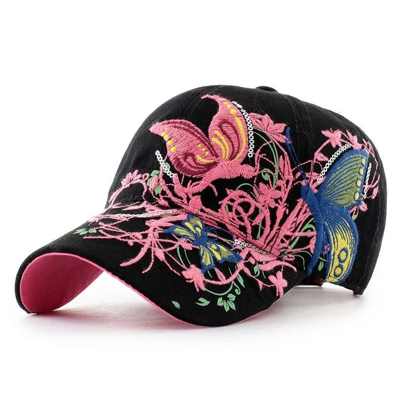 📚 Women Butterflies Flower Embroidery Caps Women Girl Sun Hats