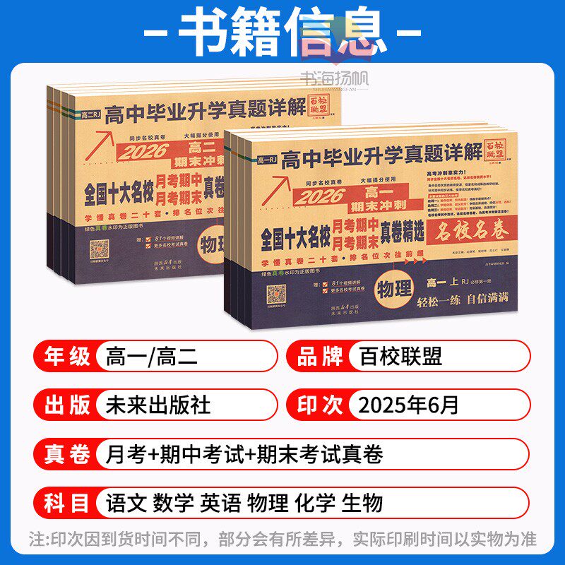 📚 2026名校名卷高一高二真题卷上下册高中毕业升学真题详解全国十大名校联考百校联盟期中末同步测试卷全套语文数学英语物理化学生物
