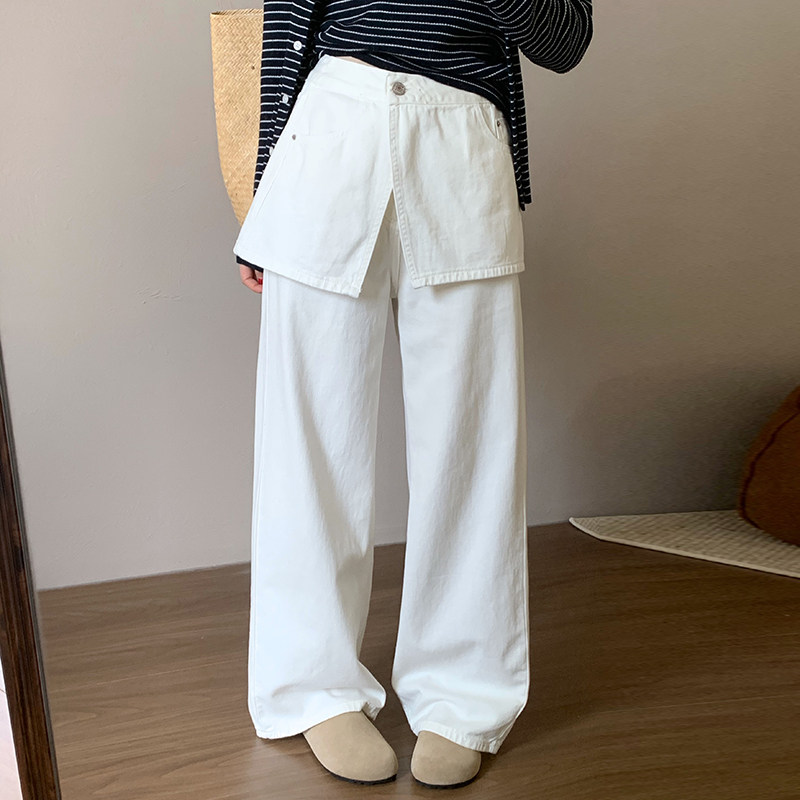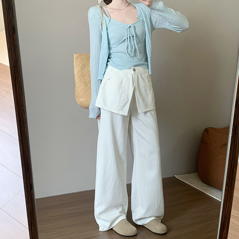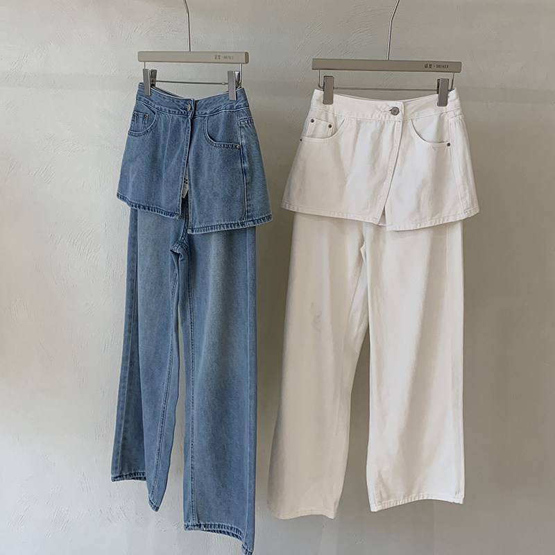 📚 话里设计感屁帘牛仔裤2026夏季新款叠穿韩版休闲宽松直筒长裤女