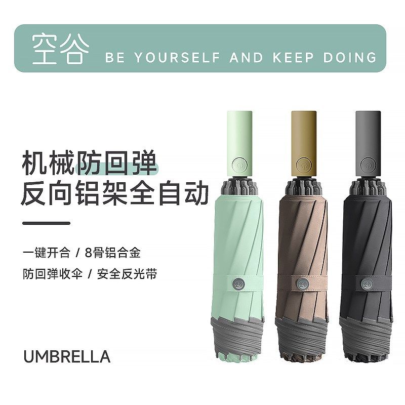 📚 空谷反向自动雨伞防回弹节节x收轻便防雨防风加固新款三折叠8骨伞