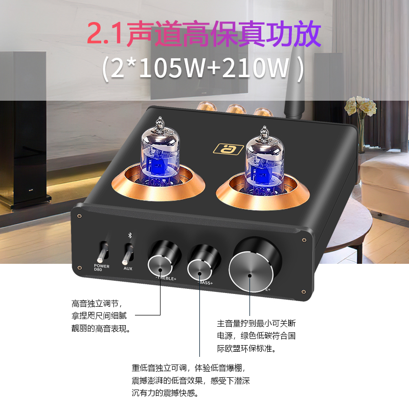 📚 阿音 前级D类功放胆机aptxHD蓝牙音频接收适配器桌面书架无源音箱