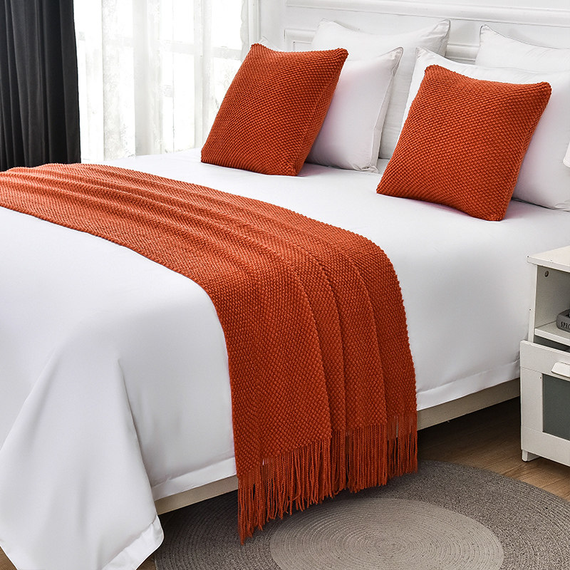 📚 酒店宾馆床上用品轻奢床尾巾民宿北欧风针织床旗床盖床简约床搭巾