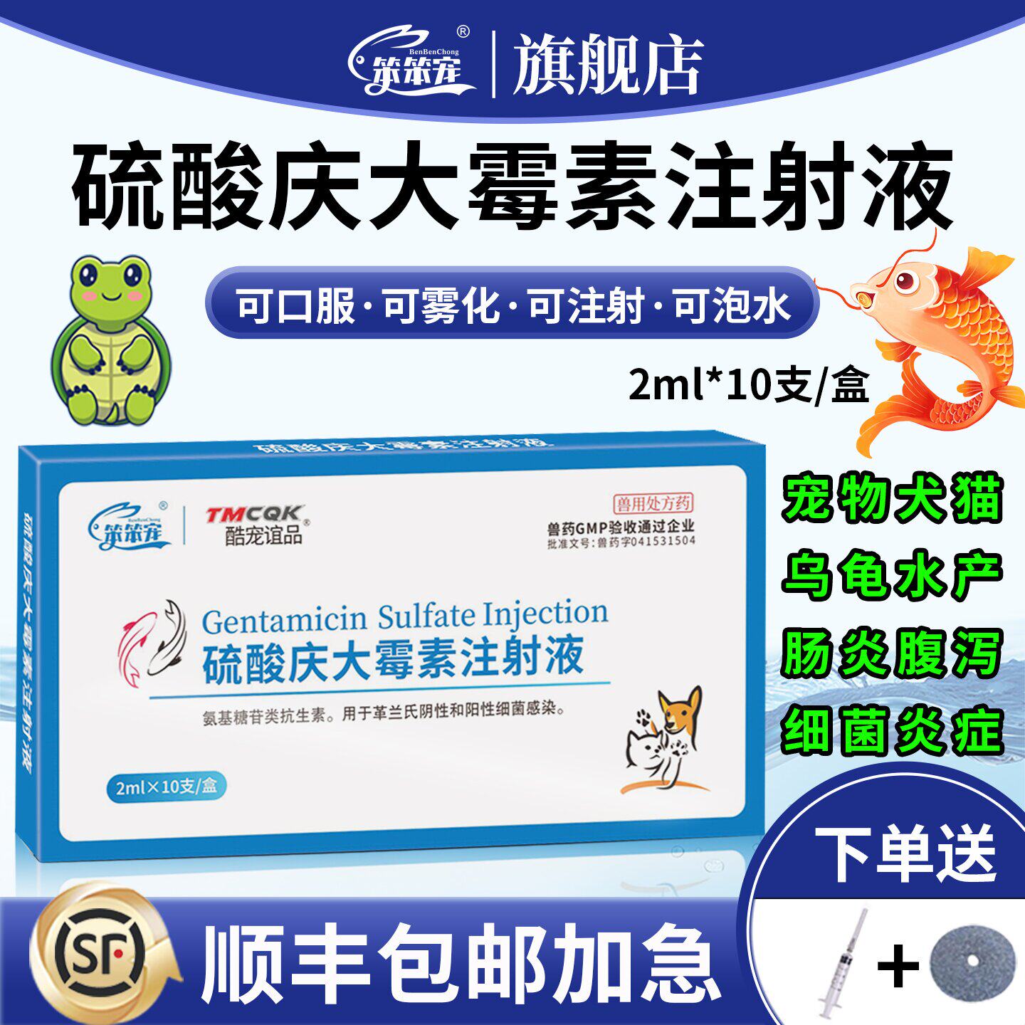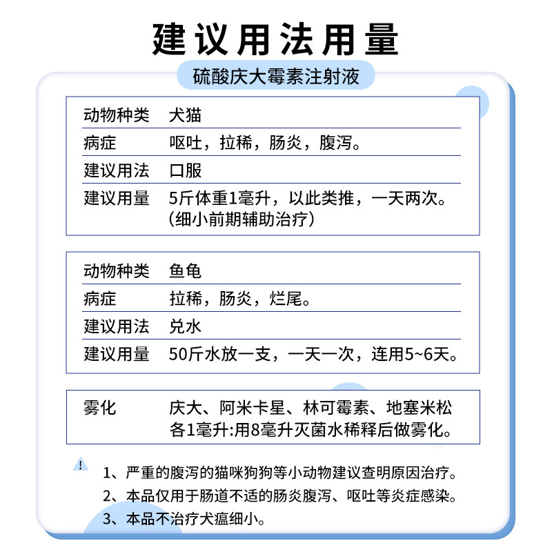 📚 庆大霉素鱼用水族鱼药猫狗鸽子用乌龟肠炎庆大霉素注射用液兽用新