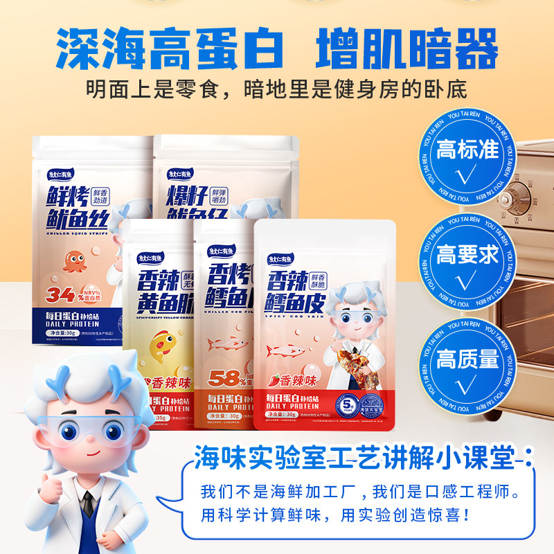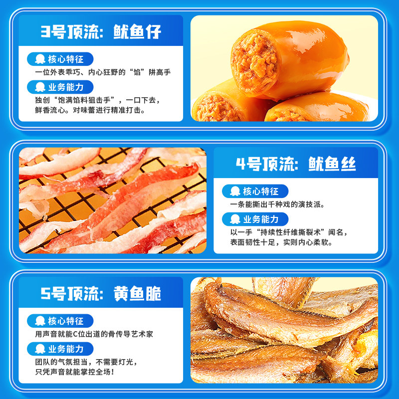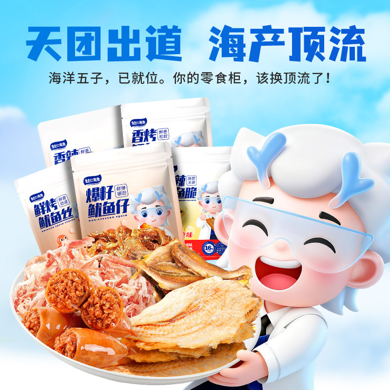 📚 鲜烤鱿鱼丝鳕鱼皮鱿鱼仔海味小零食套装组合5下酒小零食