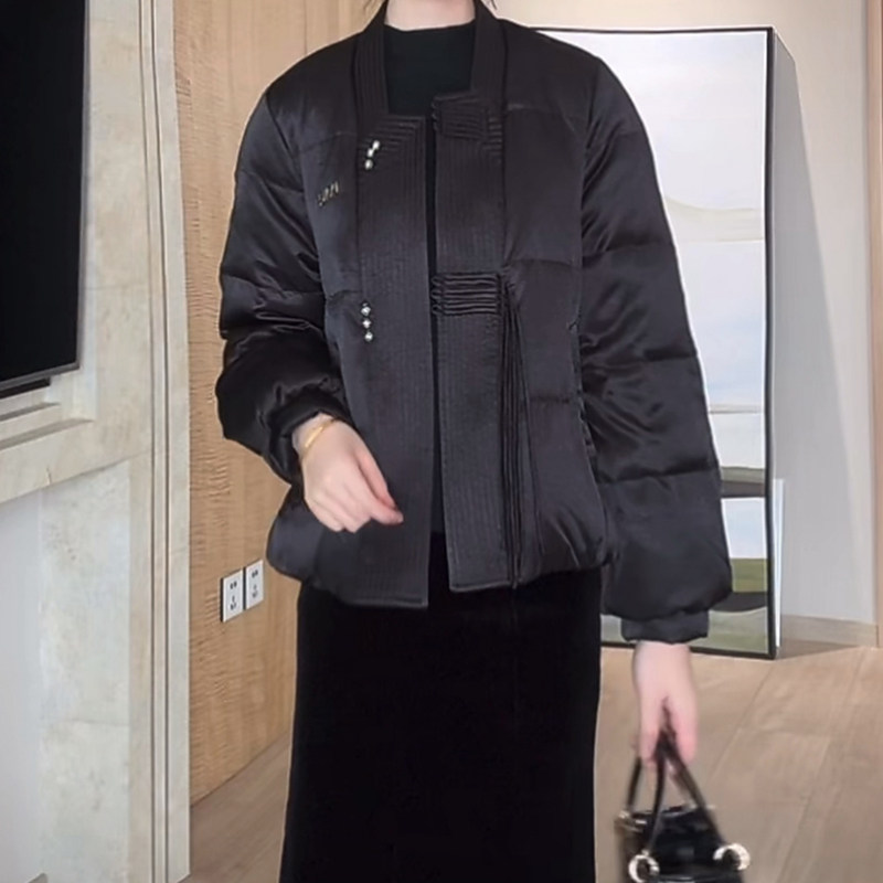 📚 新中式国风短款米白色羽绒服女2025冬季新款加厚高级感面包服外套