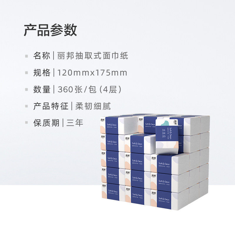 📚 丽邦4层抽纸360张原生木浆纸巾家用实惠装面巾纸