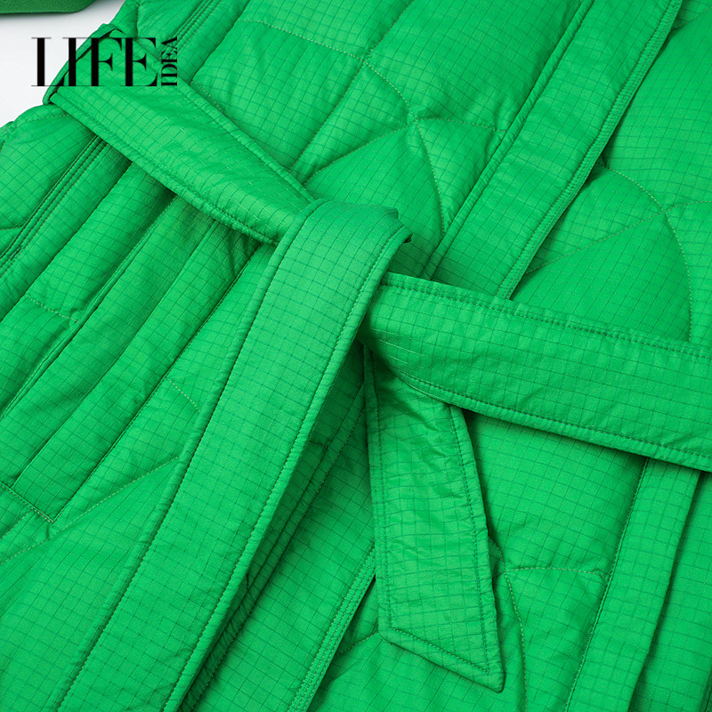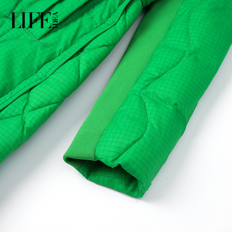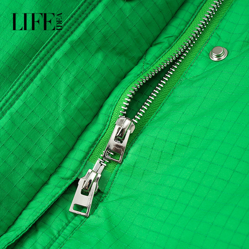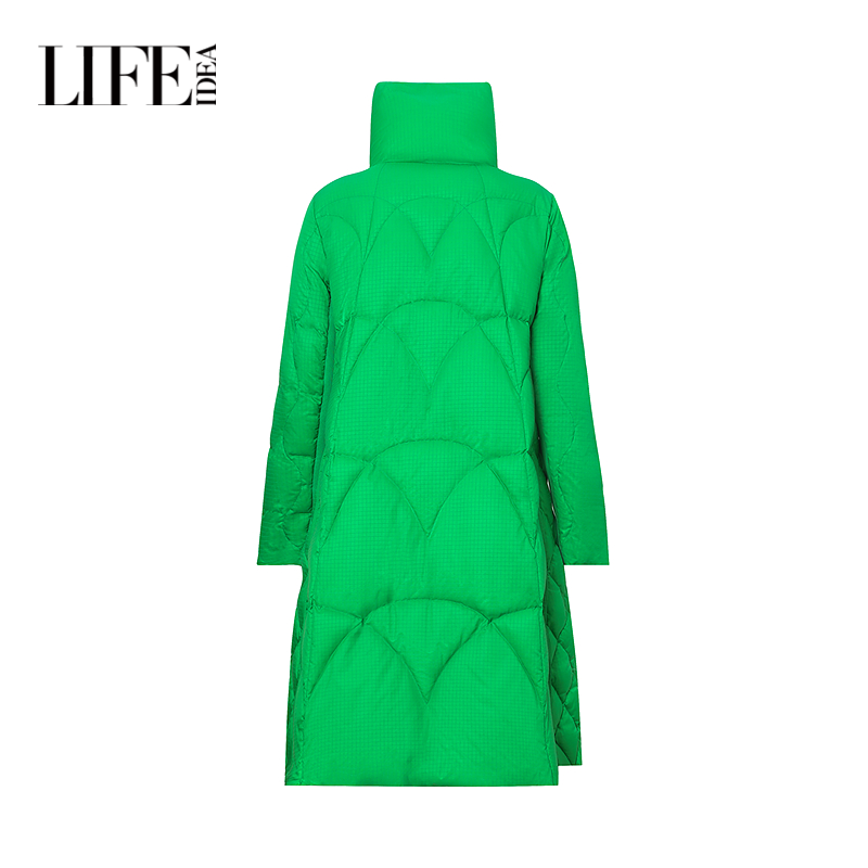 📚 莱芙艾迪儿羽绒服冬季时尚干练立领设计防寒保暖中长款绿色外套女