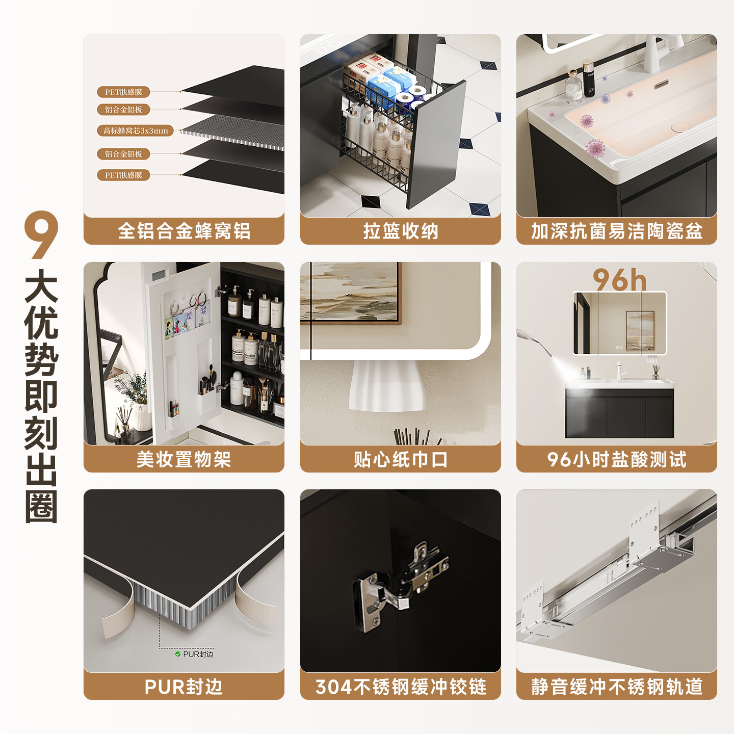 📚 帝王洁具全铝浴室柜加深19拉篮收纳多功能黑色洗漱台蜂窝铝卫浴柜