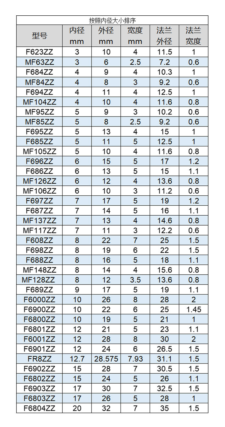 📚 法兰轴承大全 微型带挡边F695 F698 F608 F6800 ZZ 3D打印机写字