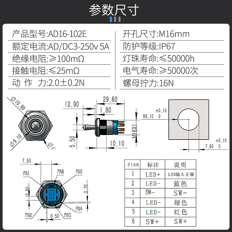 📚 钮子开关妞子扭子带灯 拨扭开关摇头摇臂开关 2档单色双色三色