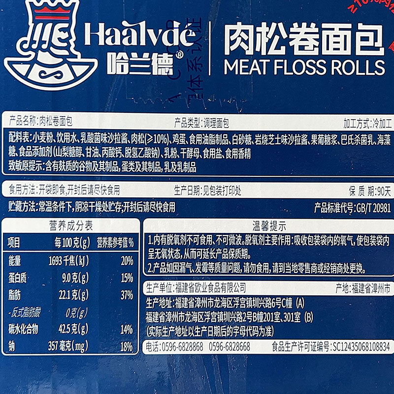 📚 哈兰德肉松卷面包整箱办公室懒人早餐即食速食糕点心晚上解饿零食